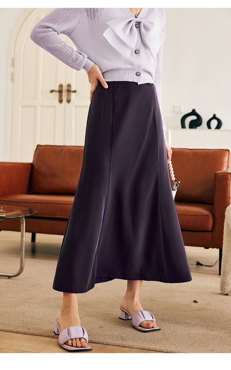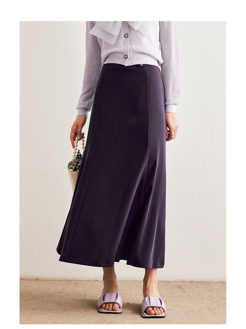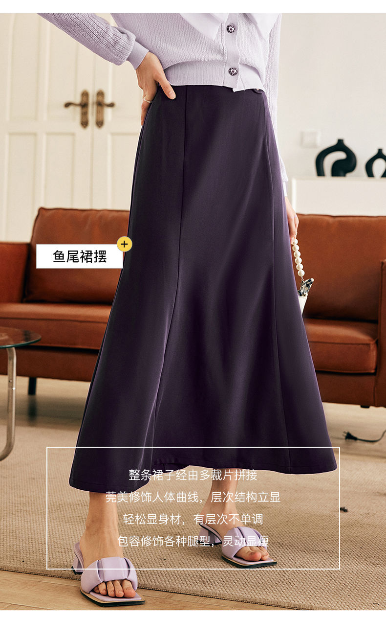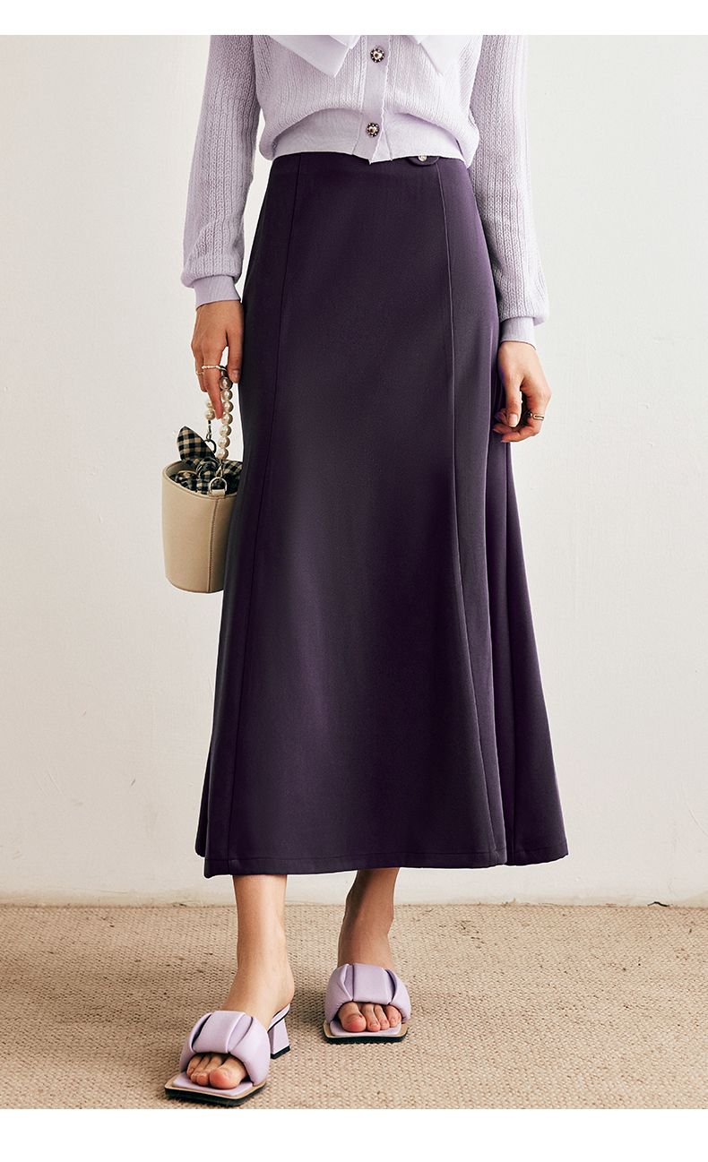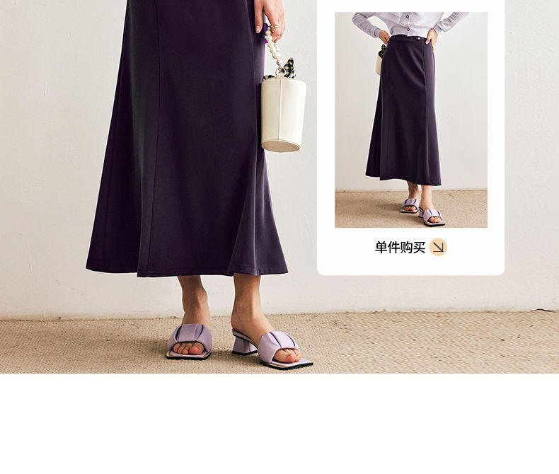OLrain欧芮儿法式紫色半身裙女早春2023新款高腰显瘦中长款鱼尾裙