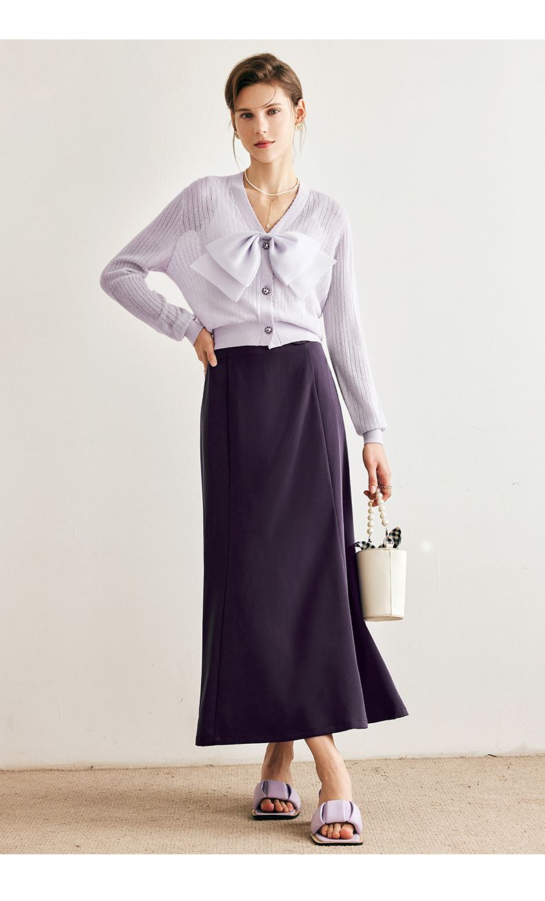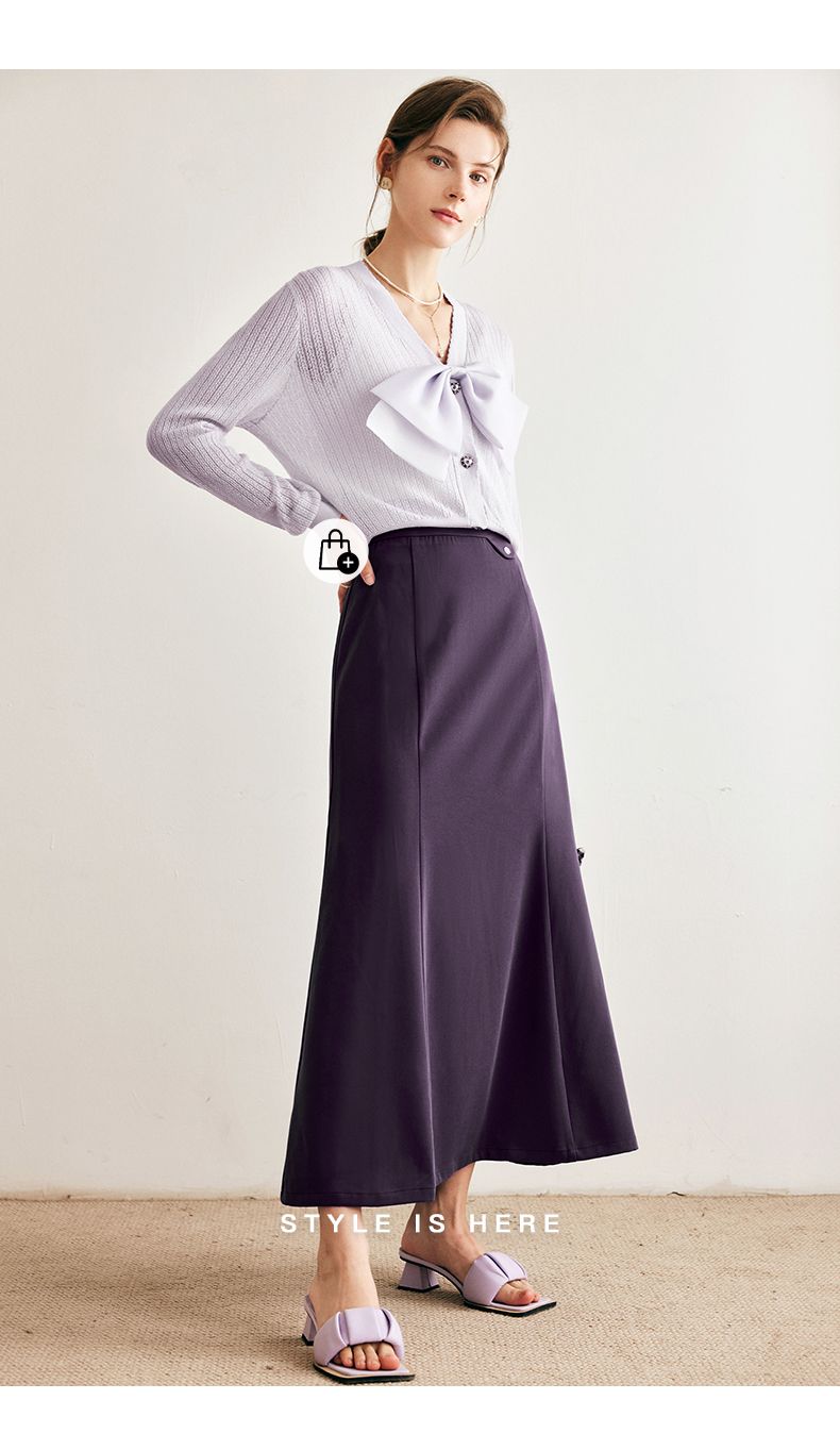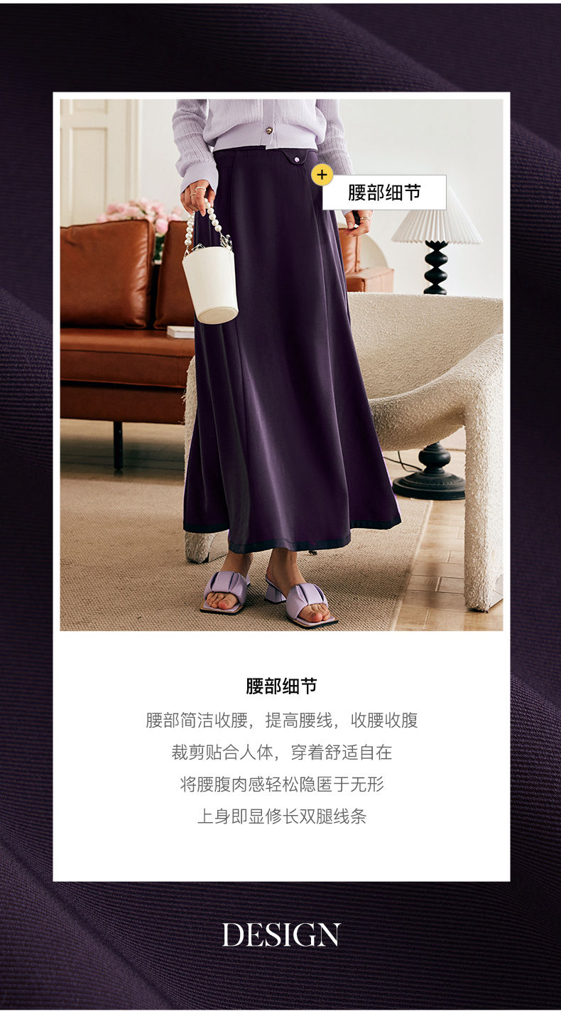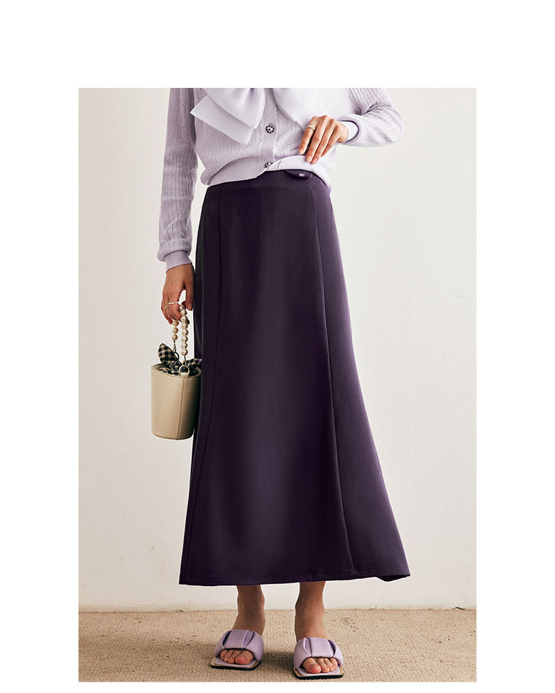 OLrain欧芮儿法式紫色半身裙女早春2023新款高腰显瘦中长款鱼尾裙