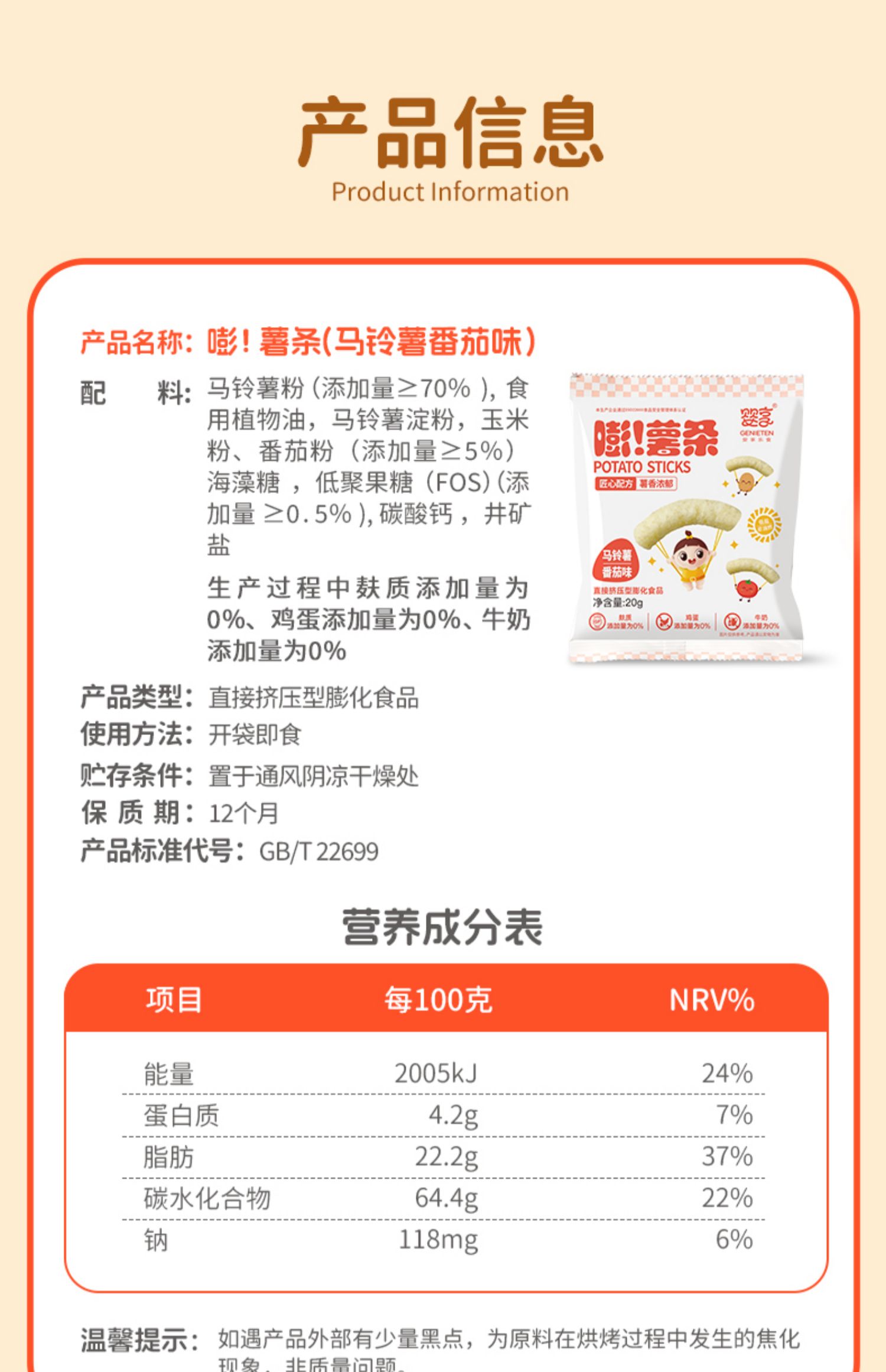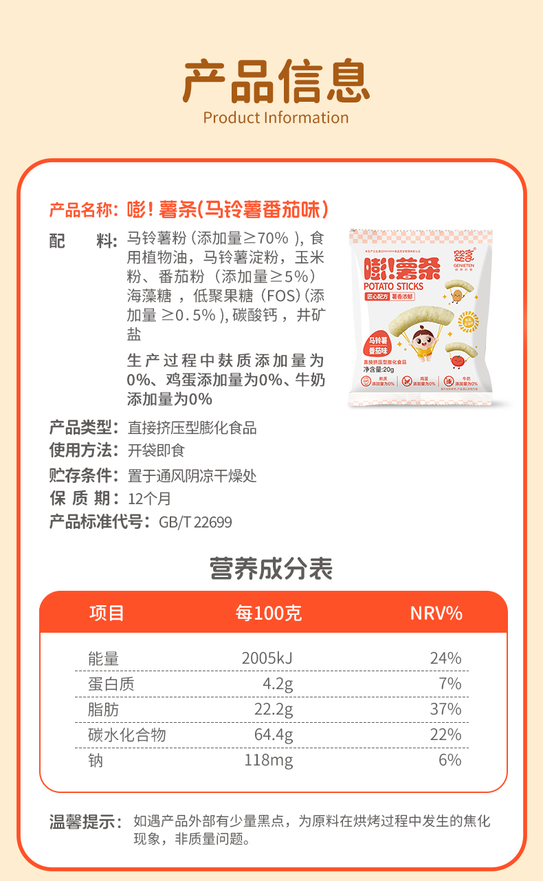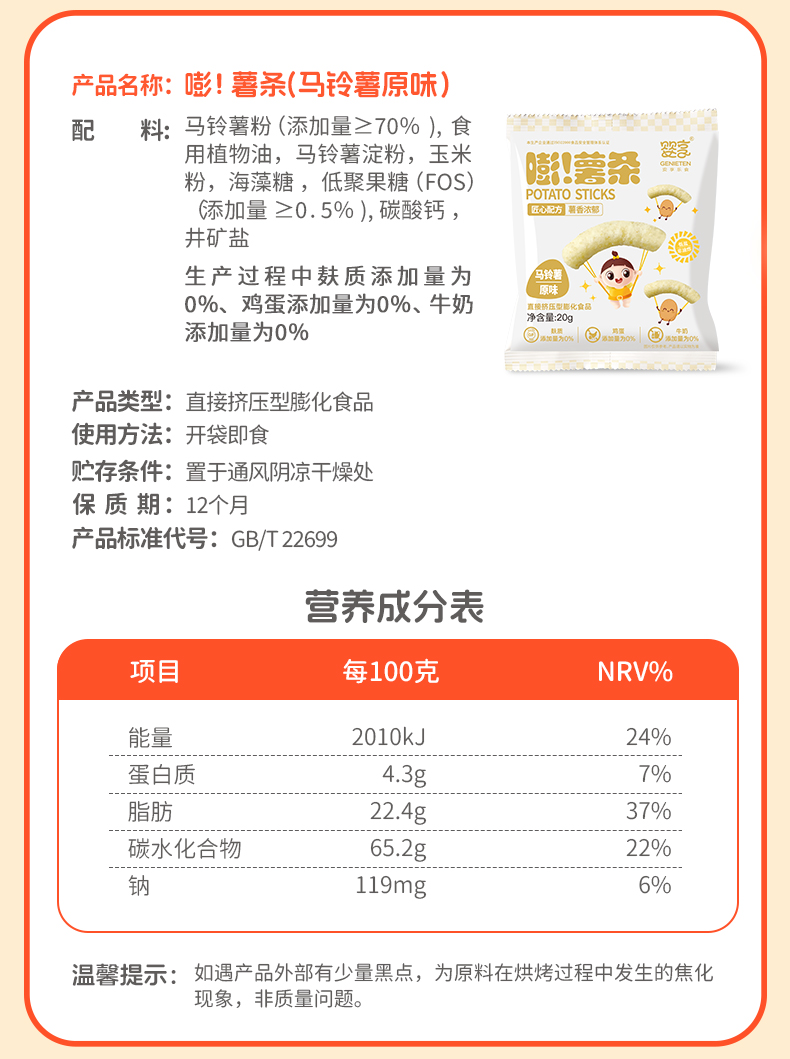 婴享儿童薯条香脆解馋小零食20g*4包