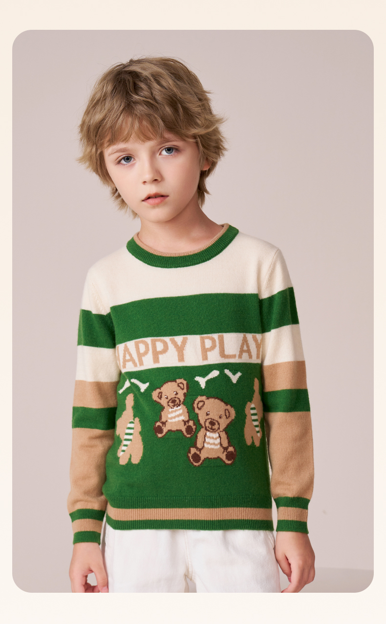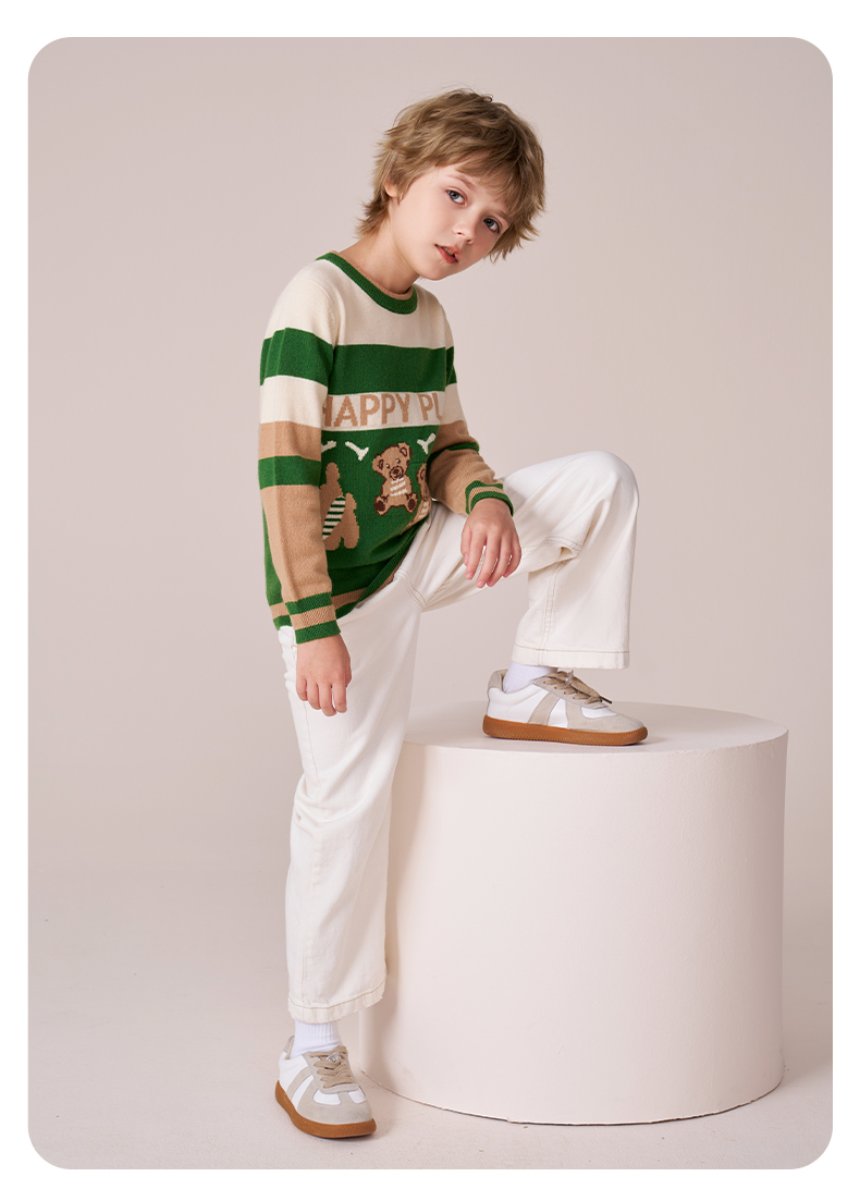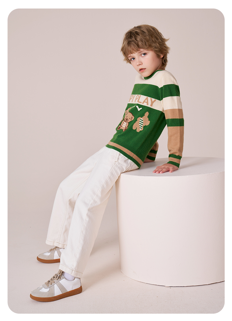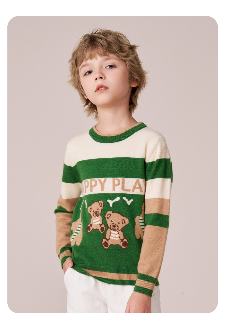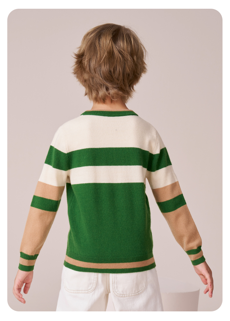 mettekids男童羊绒衫秋冬新款打底针织衫儿童休闲圆领条纹毛衣