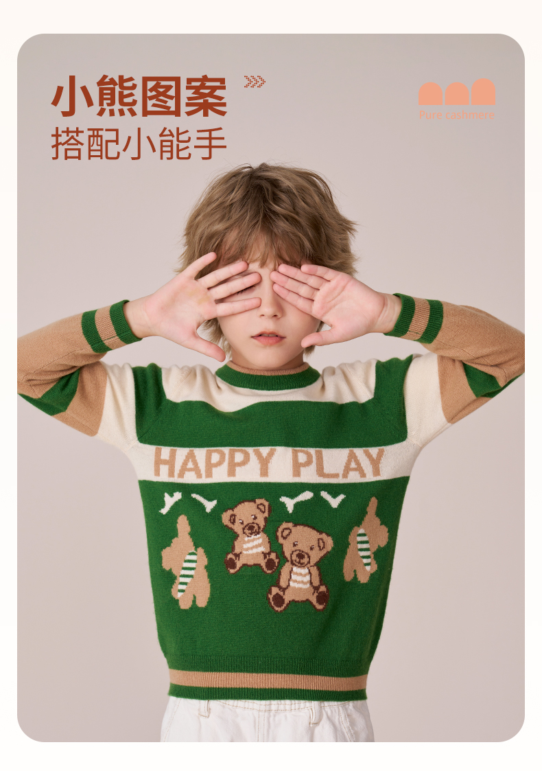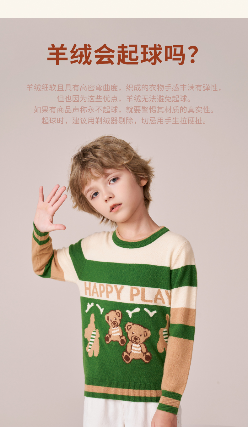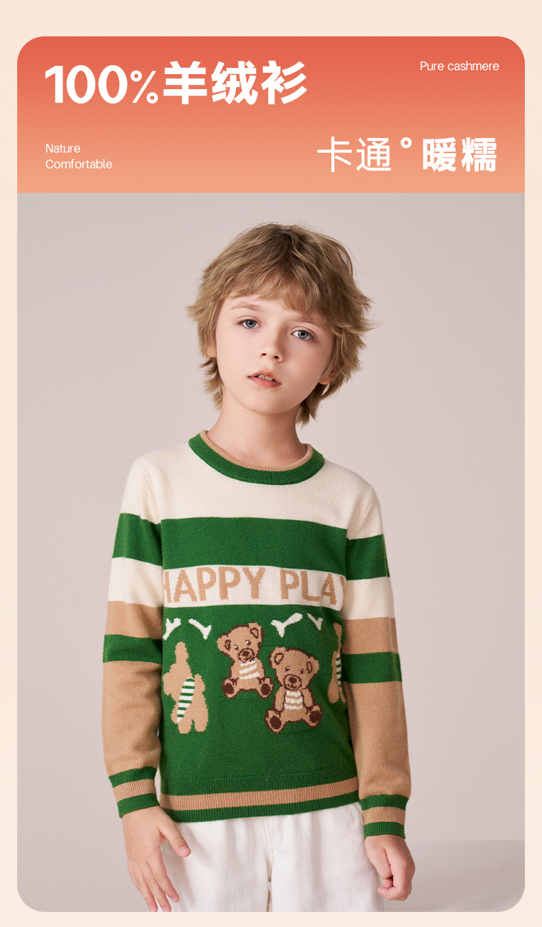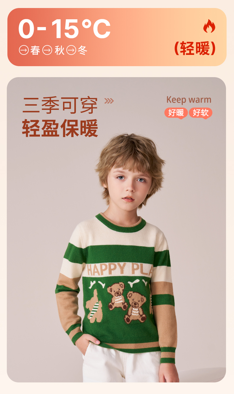 mettekids男童羊绒衫秋冬新款打底针织衫儿童休闲圆领条纹毛衣