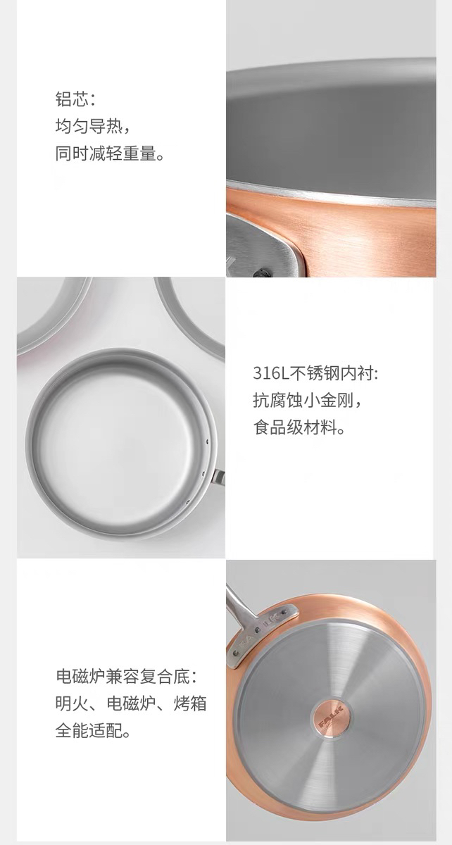 比利时进口FALK限量版四层铜锅轻量煎锅深煎锅炖锅电磁炉燃气通用