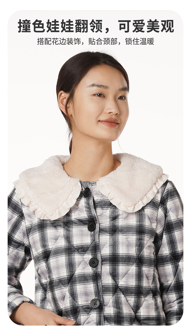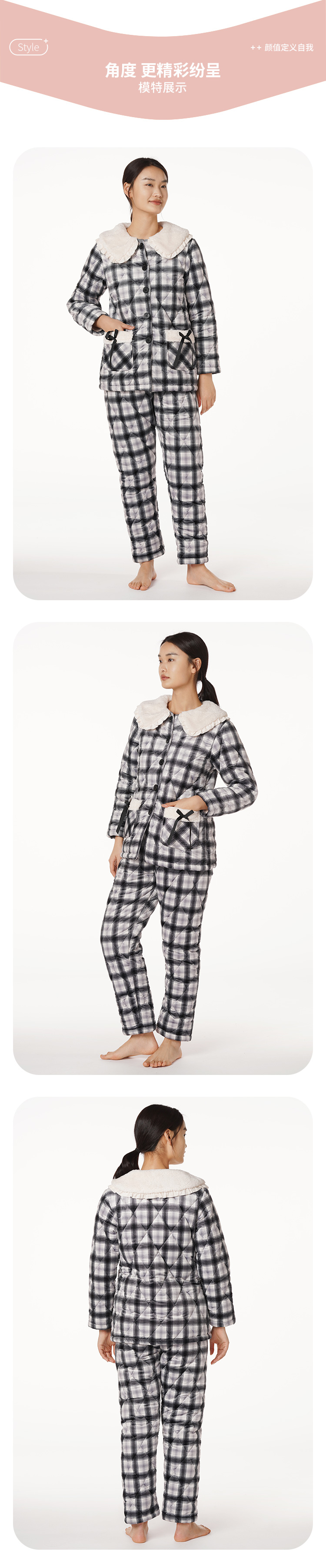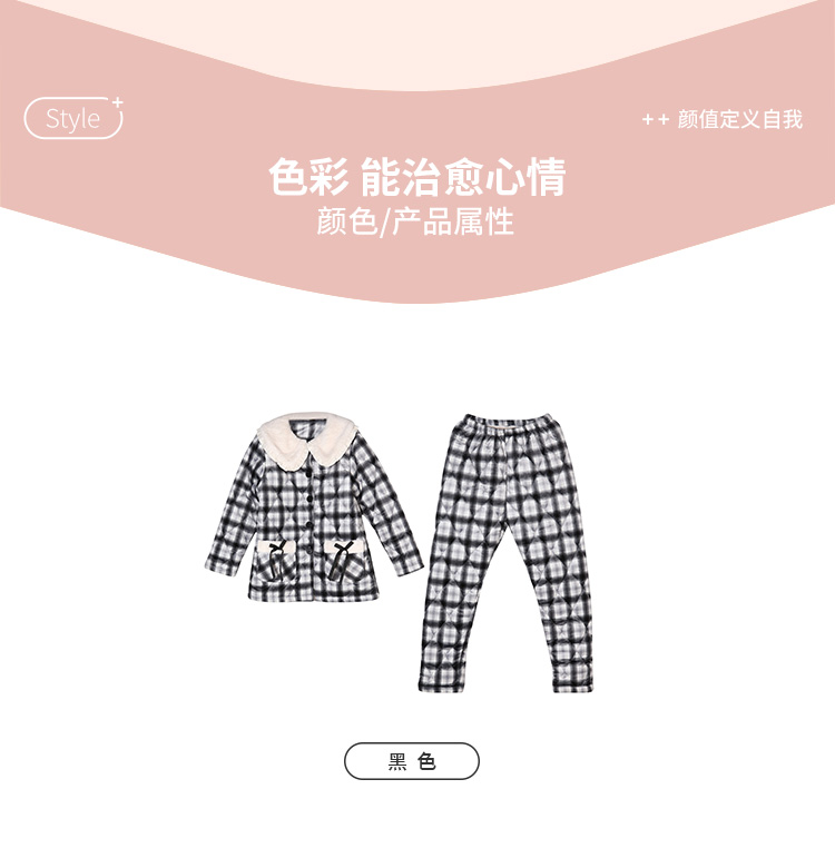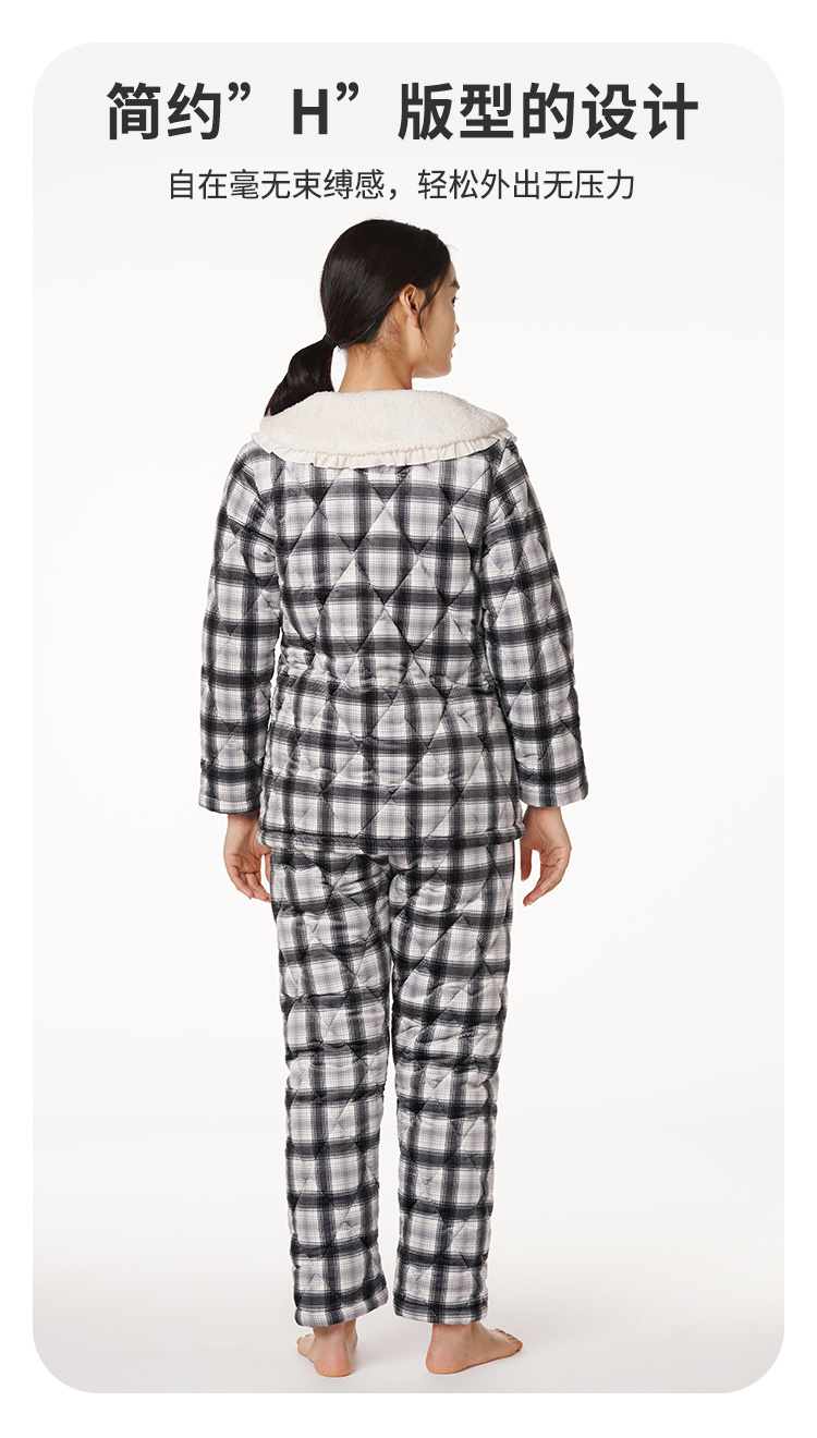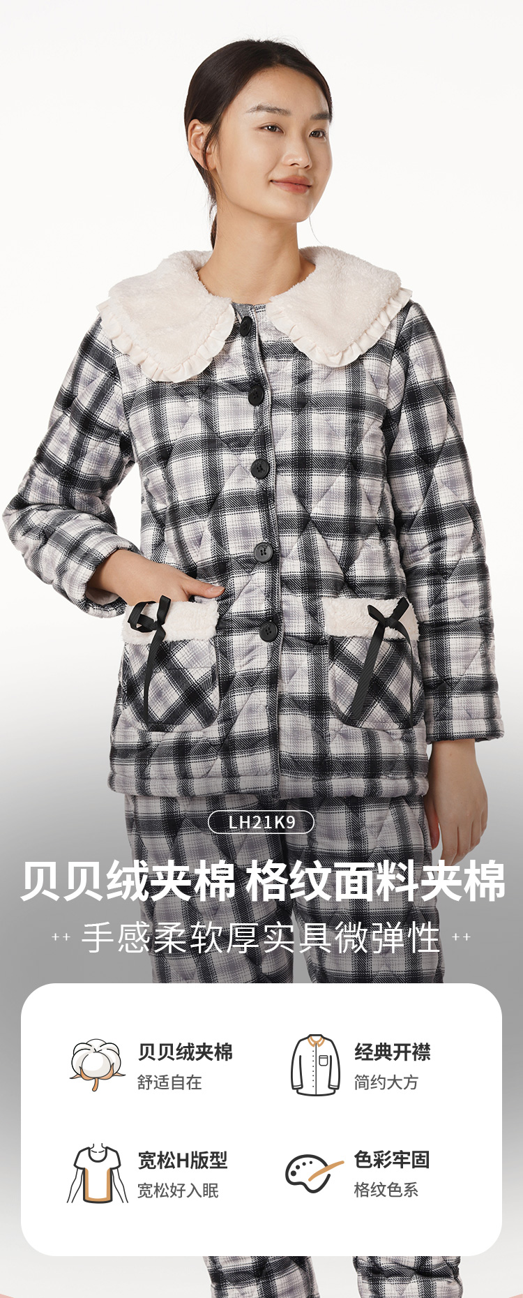 都市丽人舒适外出女士加厚夹棉套装贝贝绒夹棉加厚家居服长袖睡衣LH21K9