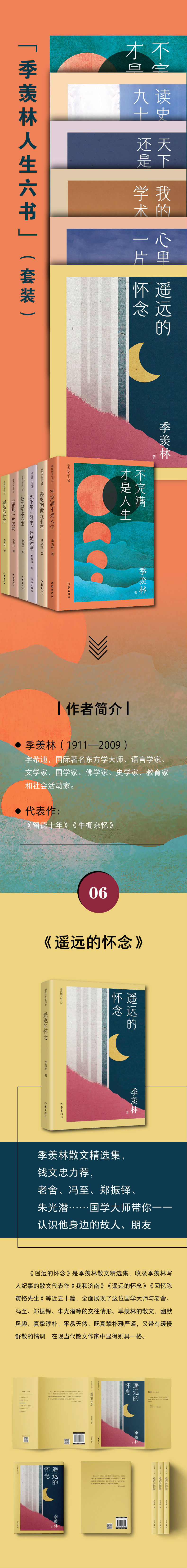 《遥远的怀念》是季羡林散文精选集,收录季羡林写人纪事的散文代表作《我和济南》《遥远的怀念》《回忆陈寅恪先生》等近五十篇,全面展现了这位国学大师与老舍、冯至、郑振铎、朱光潜等的交往情形。季羡林的散文,幽默风趣,真挚淳朴,平易天然,既真挚朴雅严谨,又带有缓慢舒散的情调,在现当代散文作家中显得别具一格。