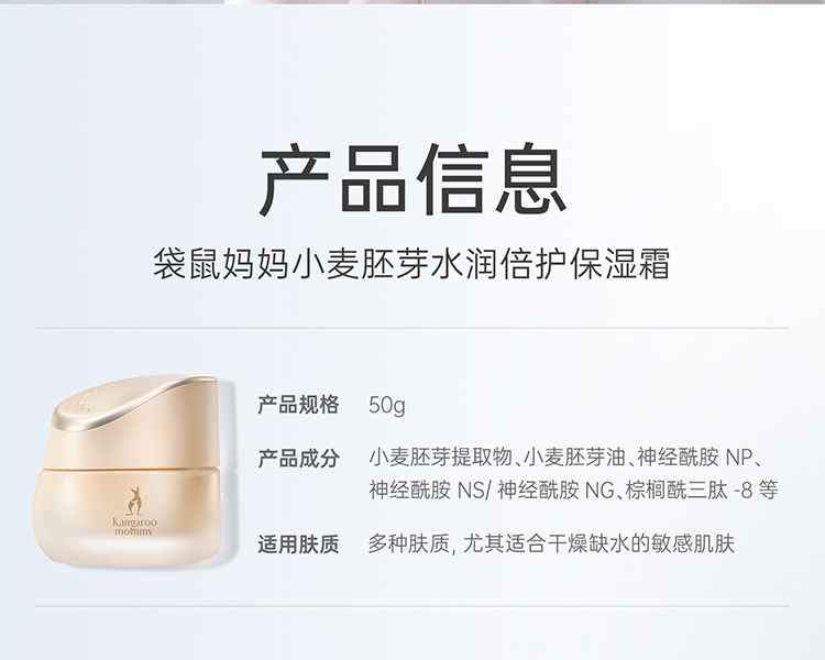 【小麦保湿面霜】准孕期安心 大干皮补水必入!多效锁水 24H高保湿 舒缓干燥脆弱 小麦胚芽水润倍护保湿精华霜50g
