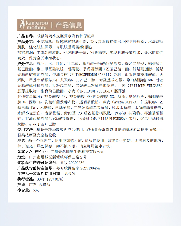 【小麦保湿面霜】大干皮补水可用!多效锁水 24H高保湿 舒缓干燥脆弱 小麦胚芽水润倍护保湿精华霜50g