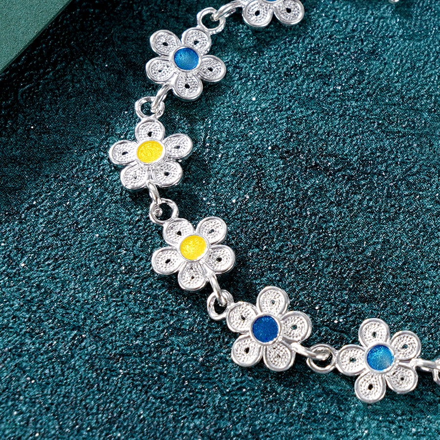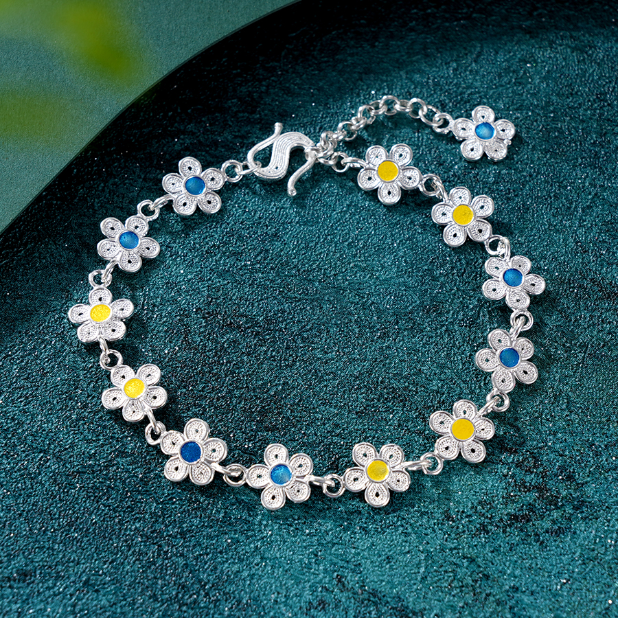 【寓意】:以花丝工艺勾勒出花朵轮廓,花朵连绵相绕,象征福气连绵不绝、生生不息。通体采用珐琅工艺,色彩明艳,古雅细腻。