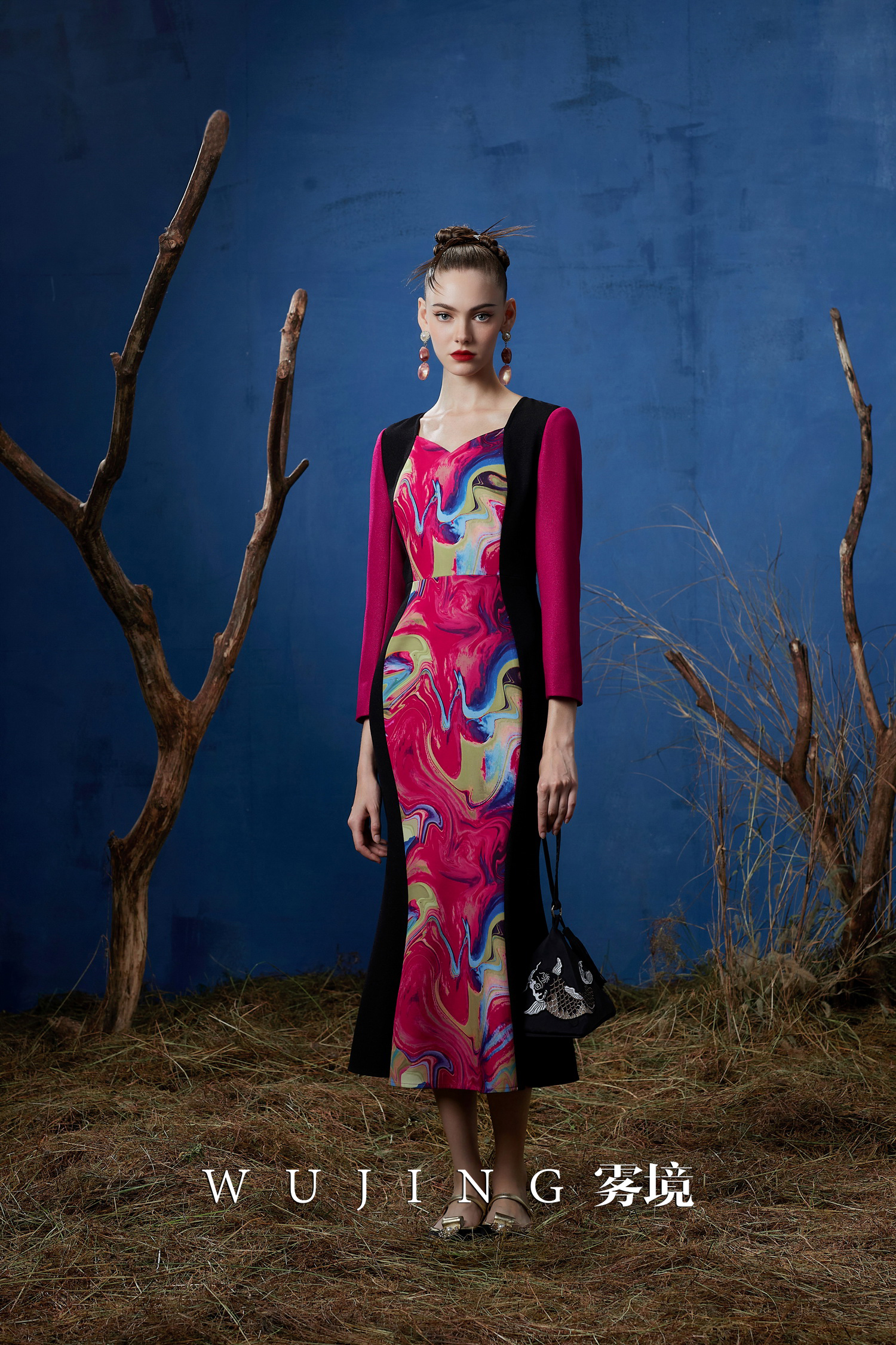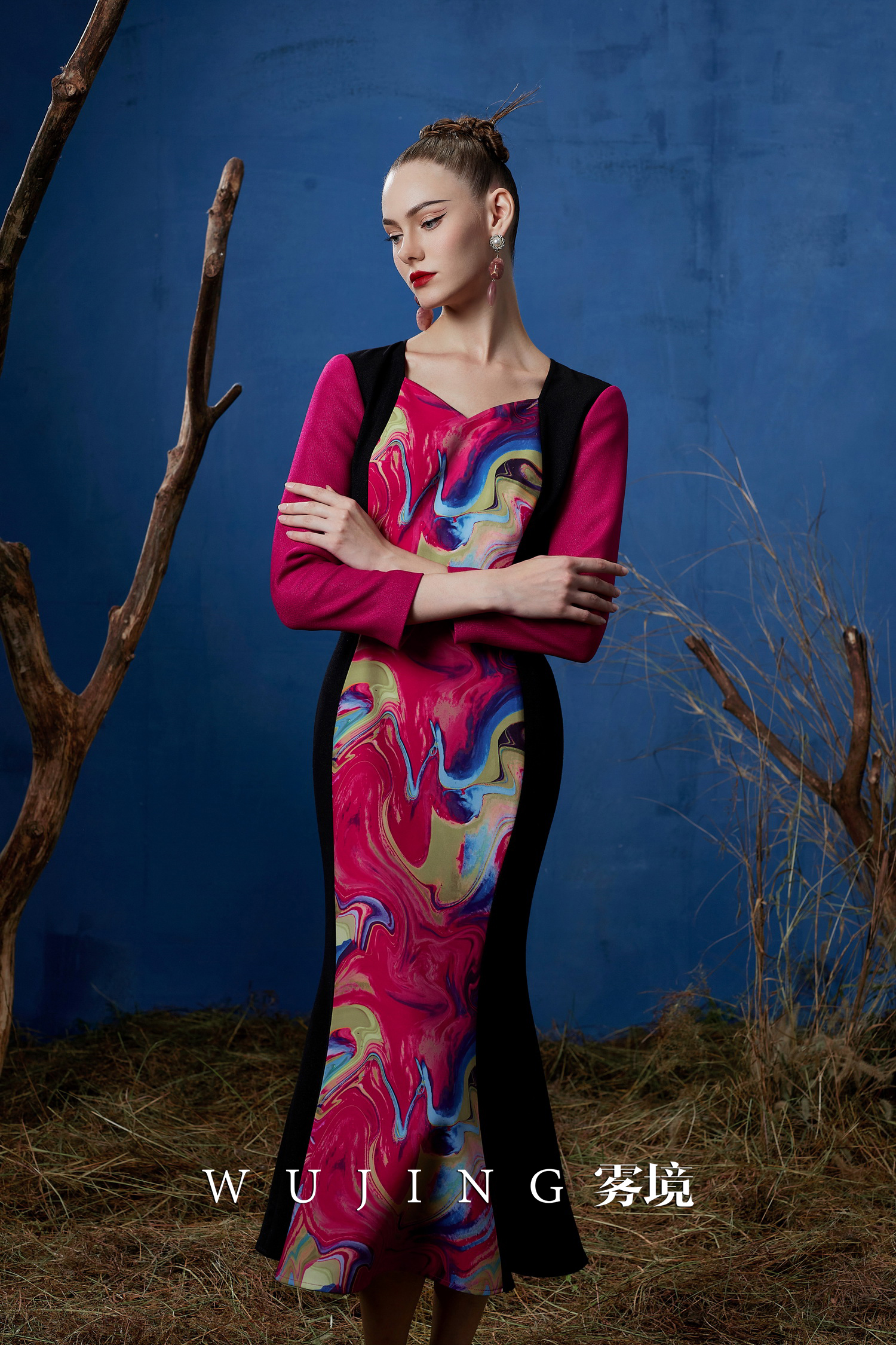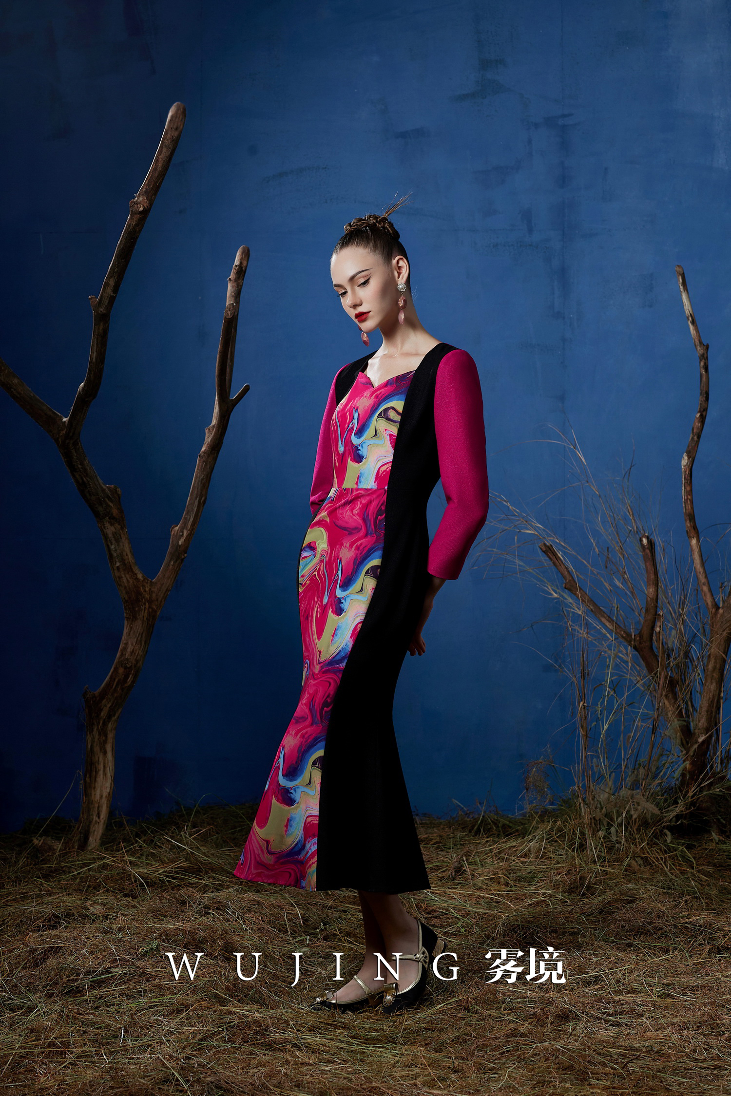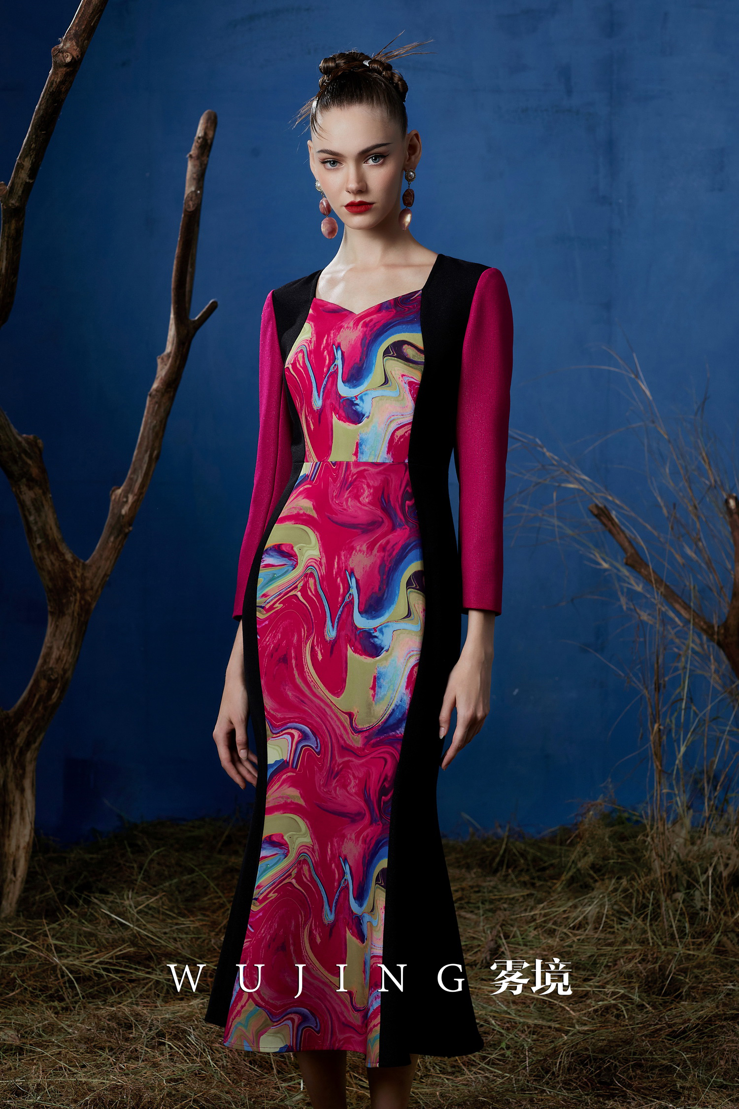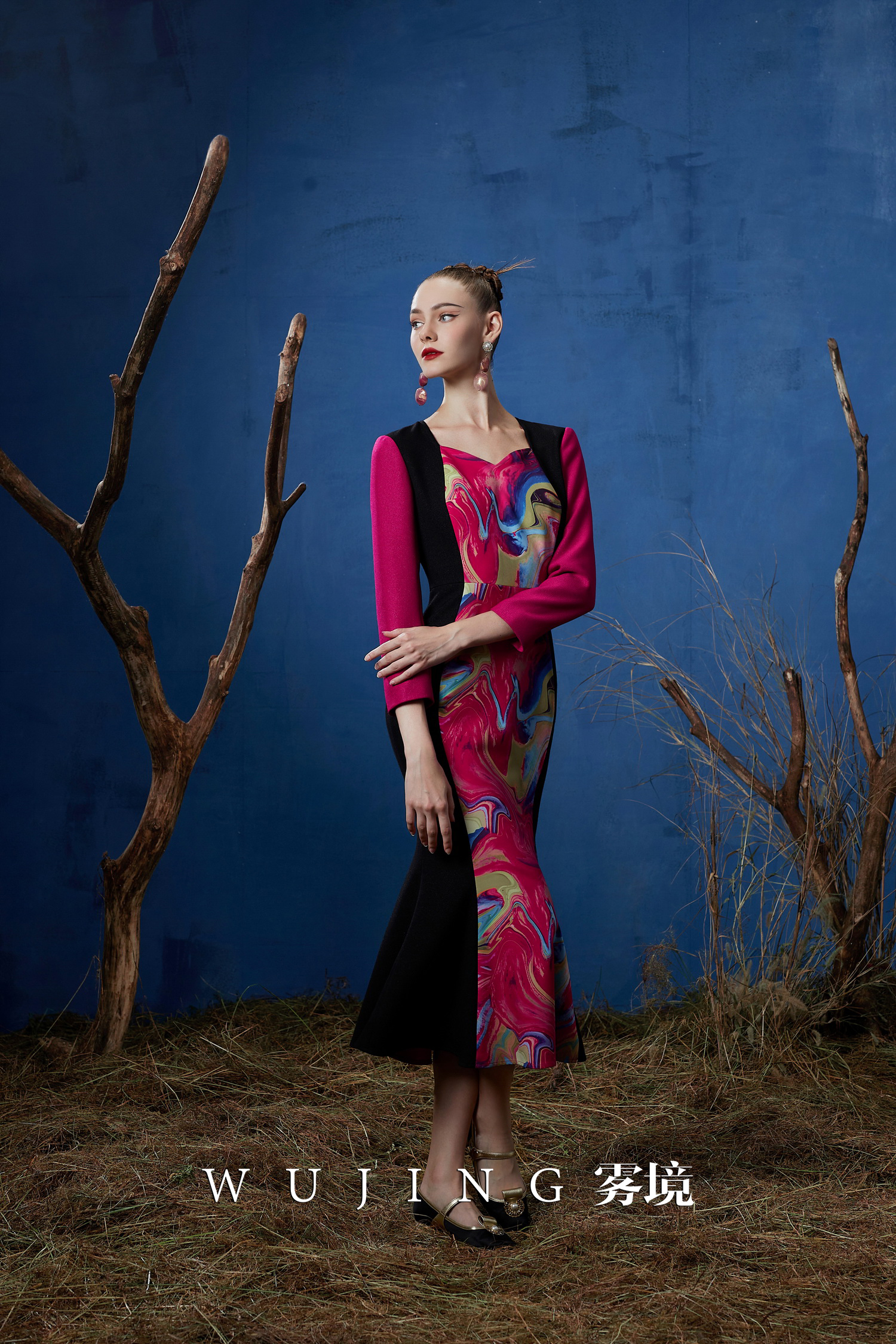 3203005 瑰意成绮 进口亮丝斜纹立体肌理料 股线蕾丝连衣裙 雾境
