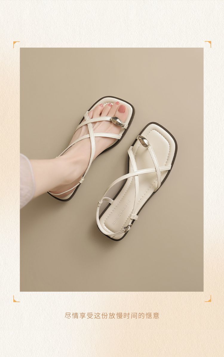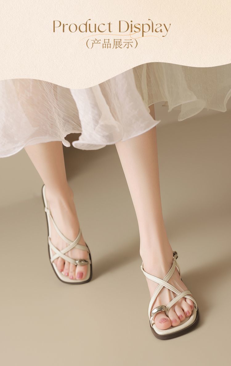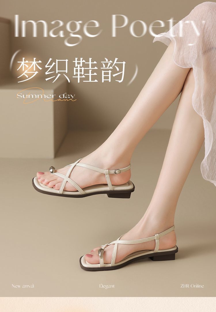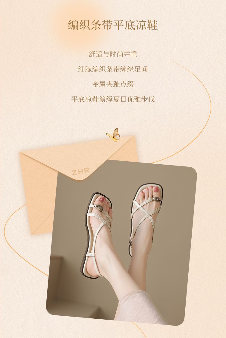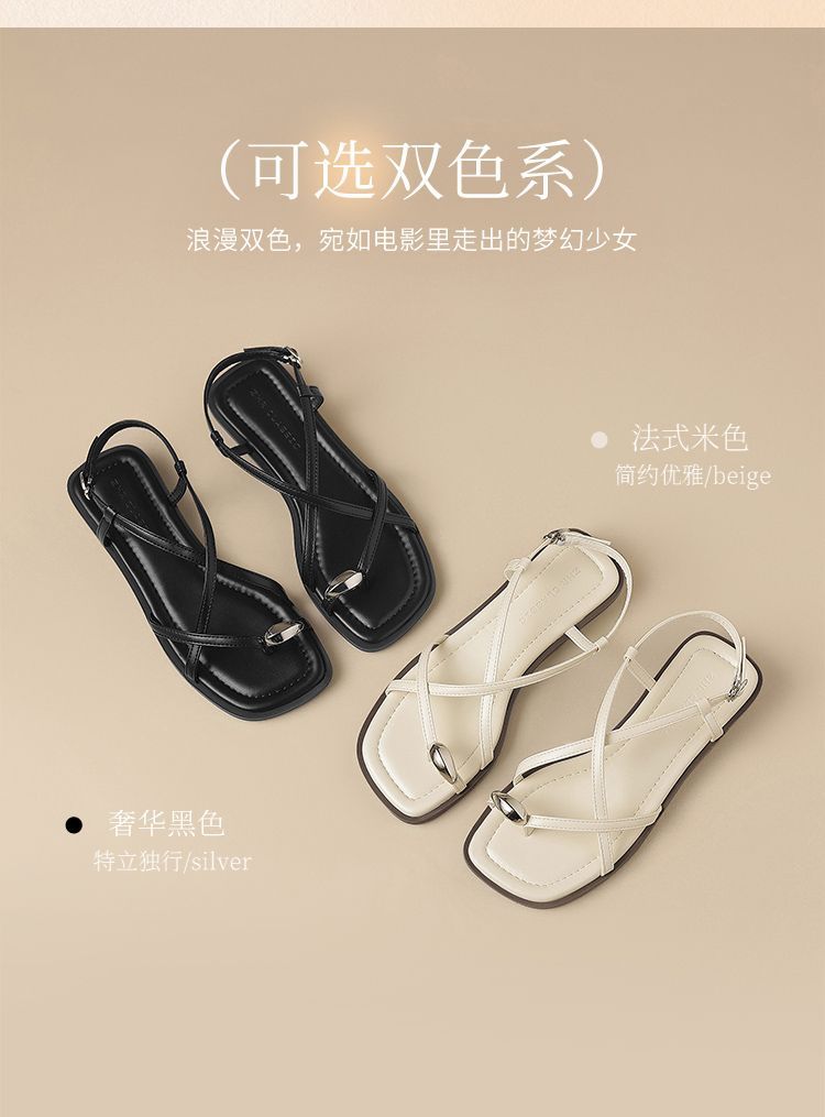 ZHR时尚凉鞋2025新款夏季罗马夹趾女款平底交叉配裙子外穿凉鞋