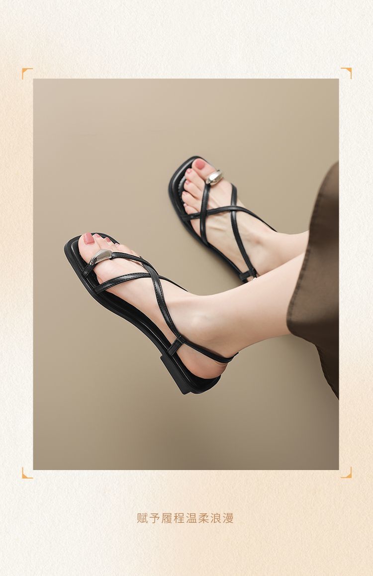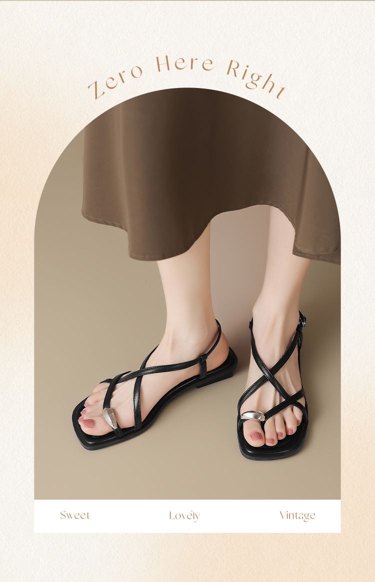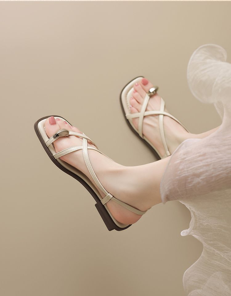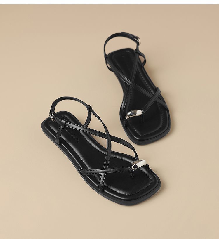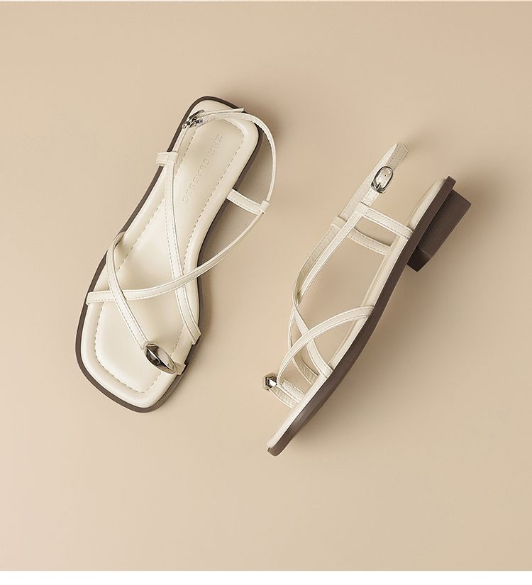 ZHR时尚凉鞋2025新款夏季罗马夹趾女款平底交叉配裙子外穿凉鞋