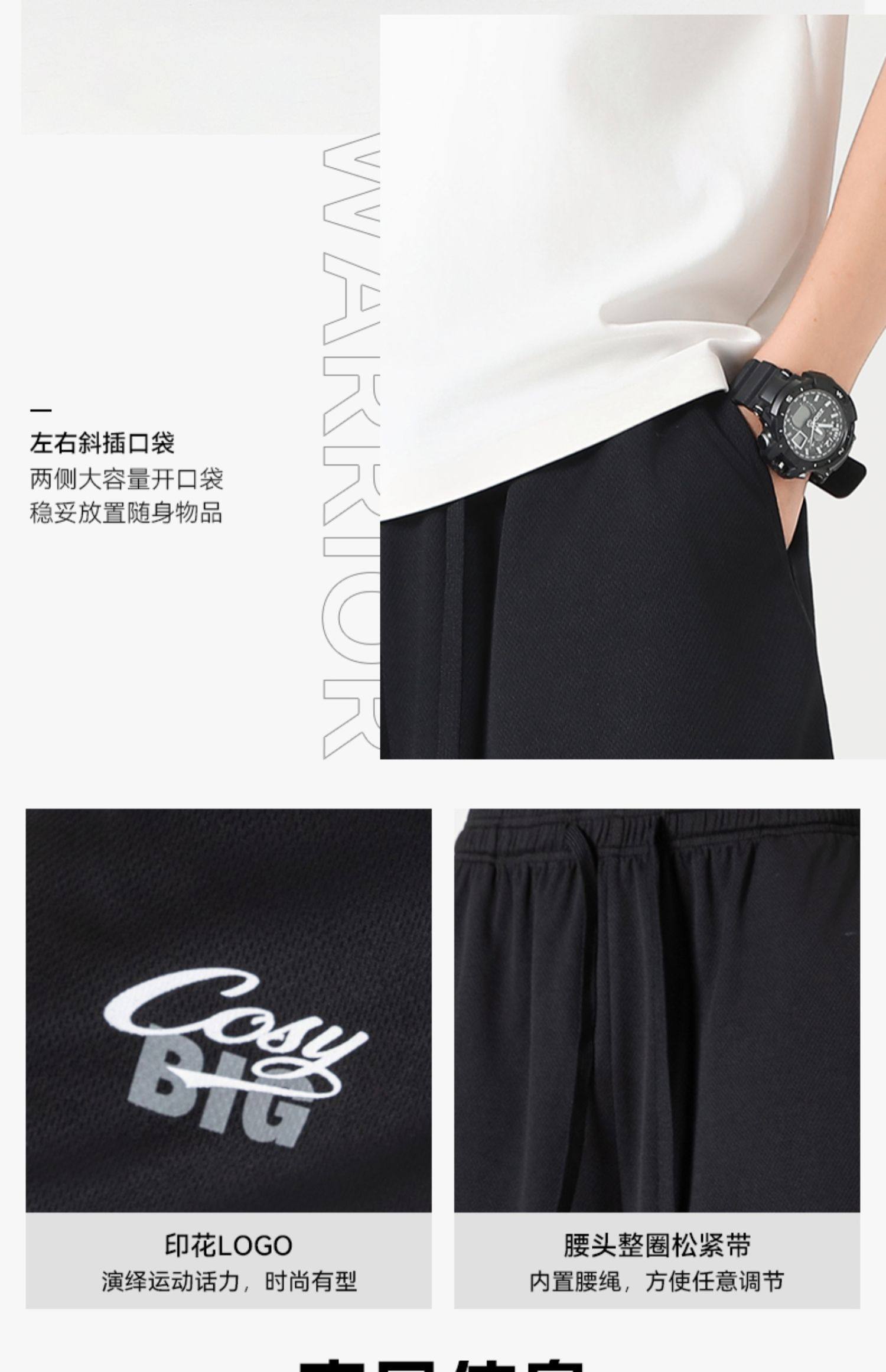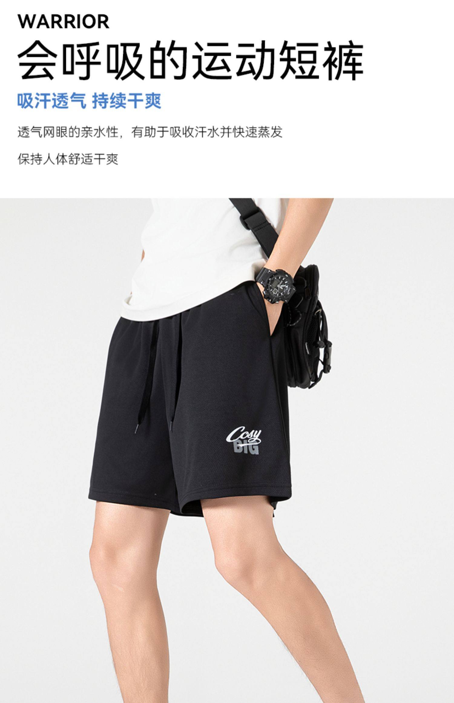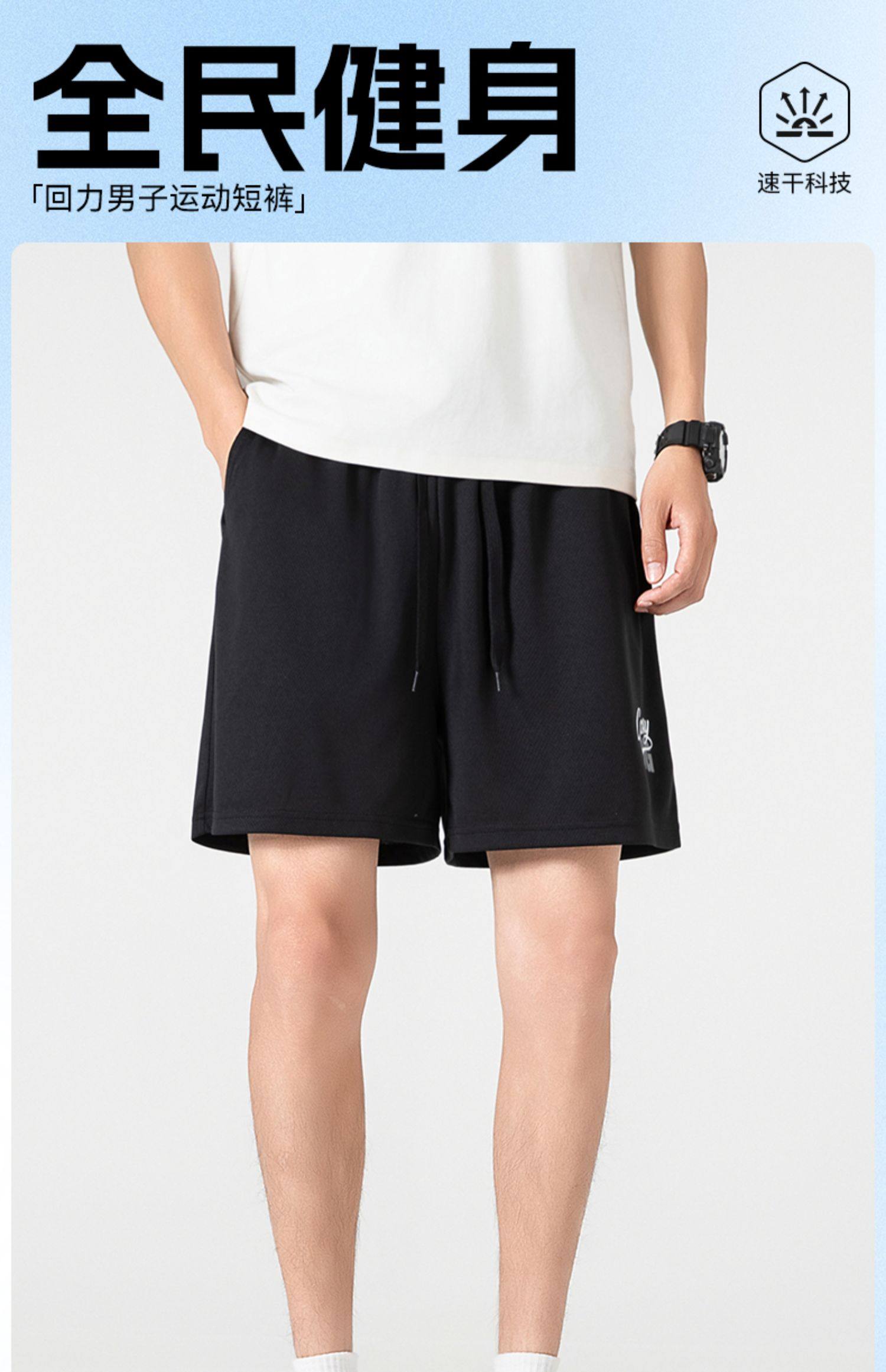 回力冰丝短裤男款夏季薄款外穿男士透气休闲裤宽松跑步运动五分裤