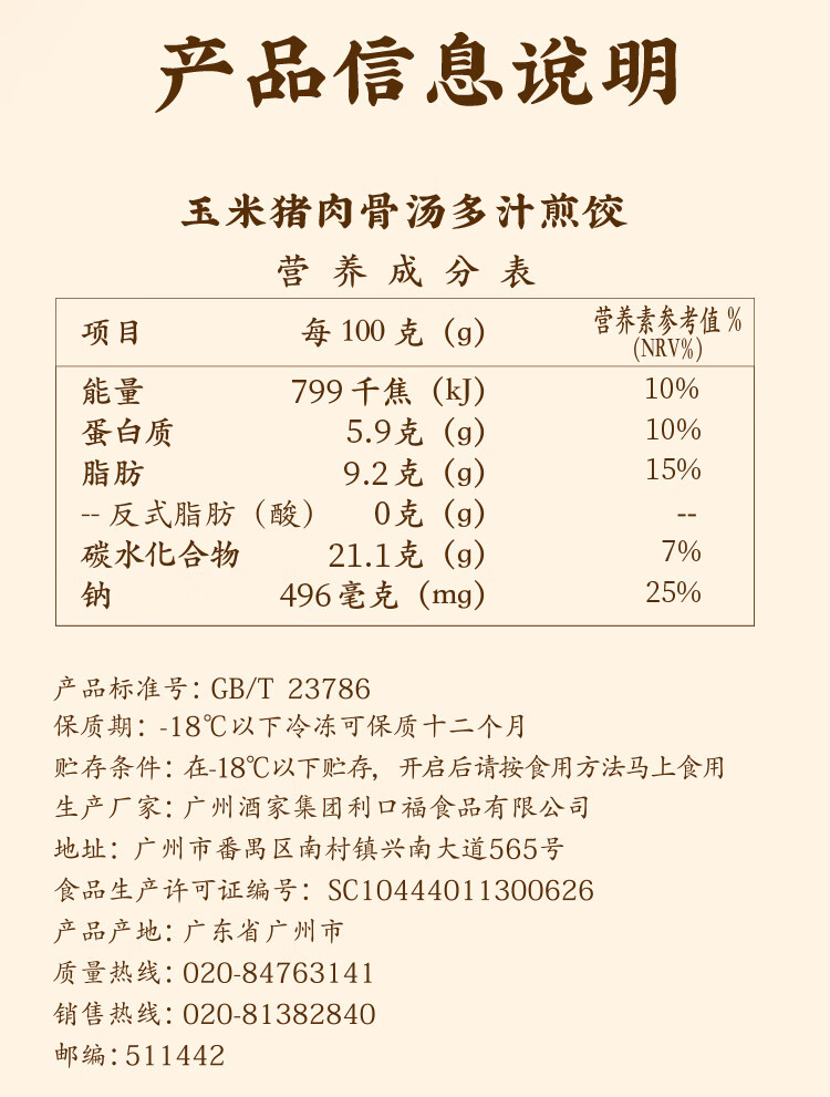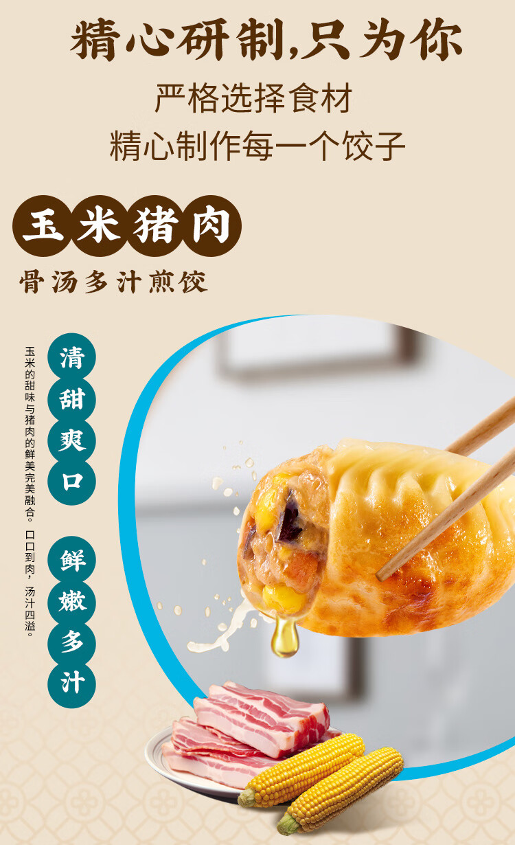 【百】利口福广州酒家 玉米猪肉煎饺 300克10只/袋