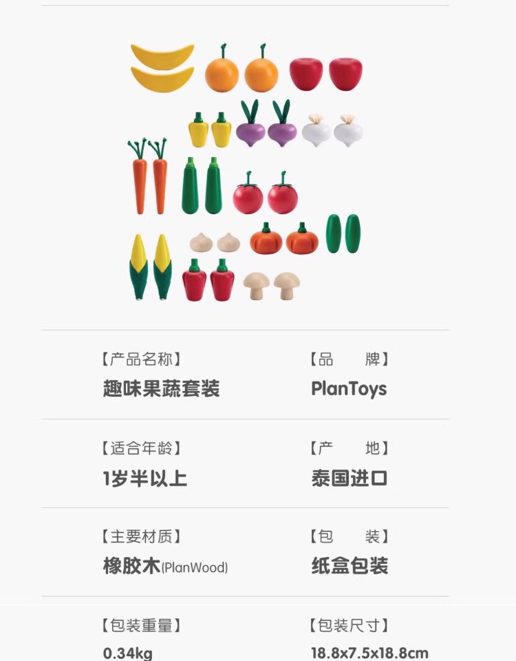Plantoys 过家家厨房趣味果蔬套装 仿真蔬菜水果厨房玩具宝宝益智 18个月+