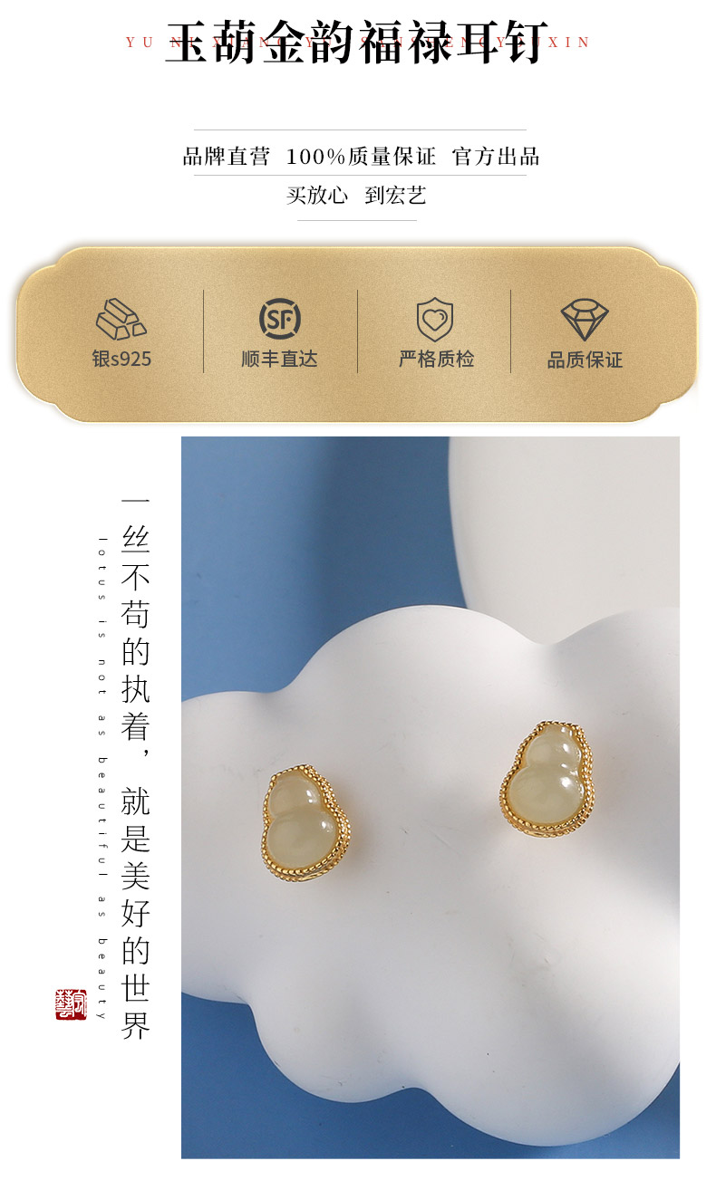 【宏艺珠宝】玉葫金韵福禄·银s925耳饰