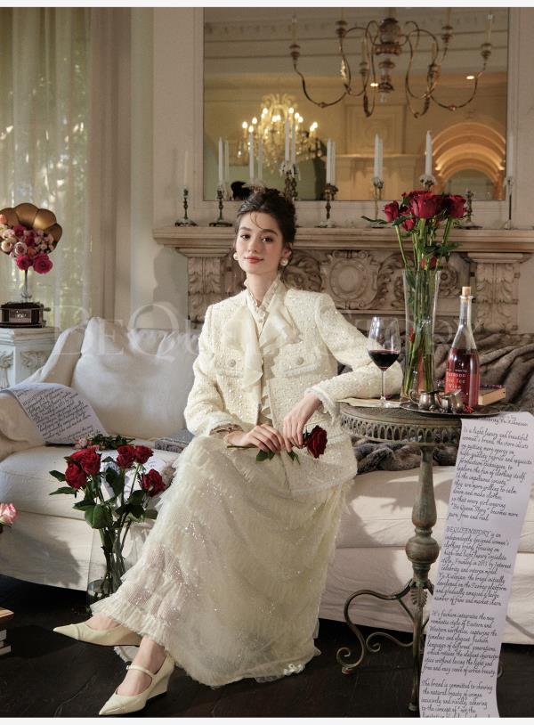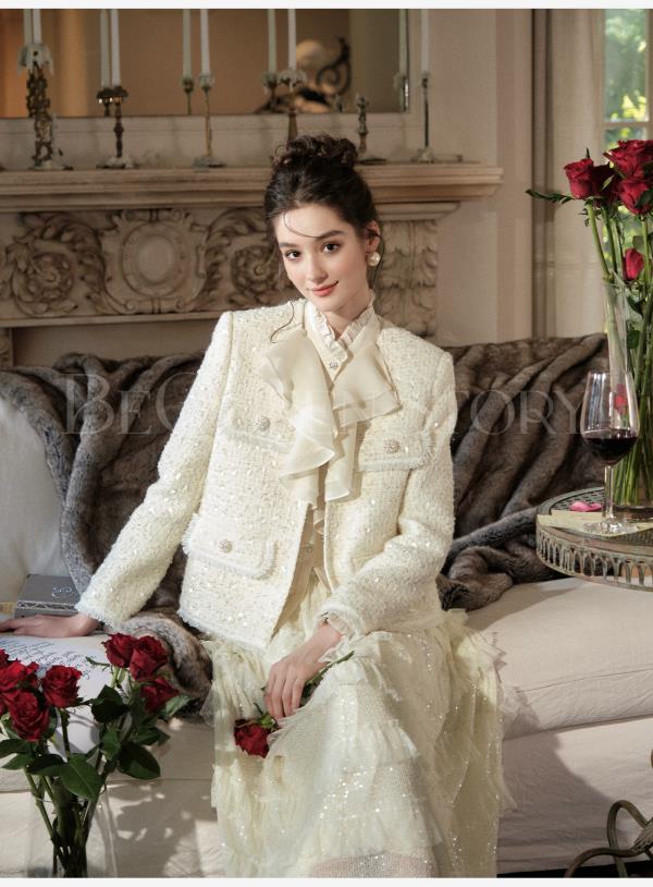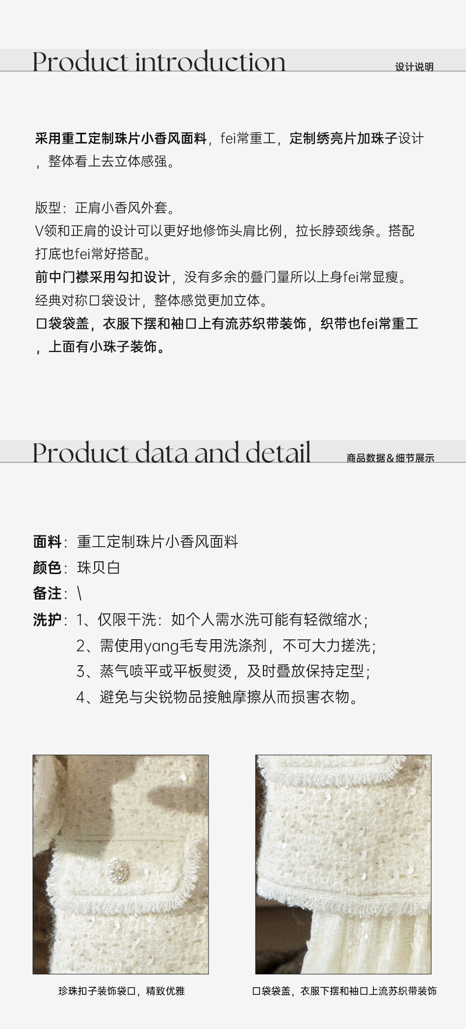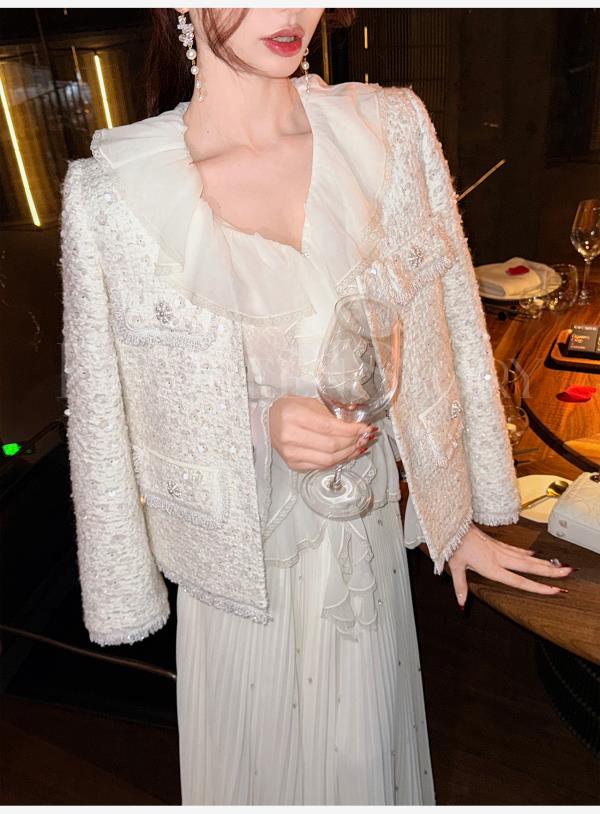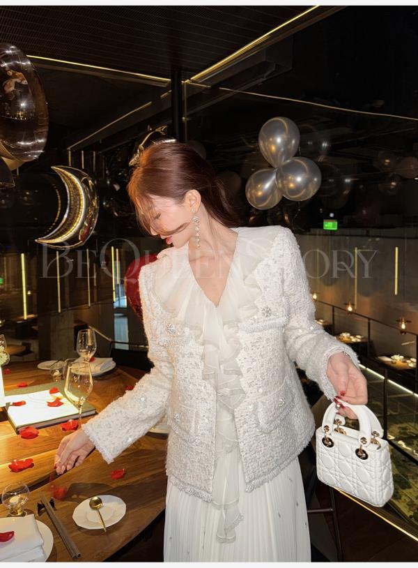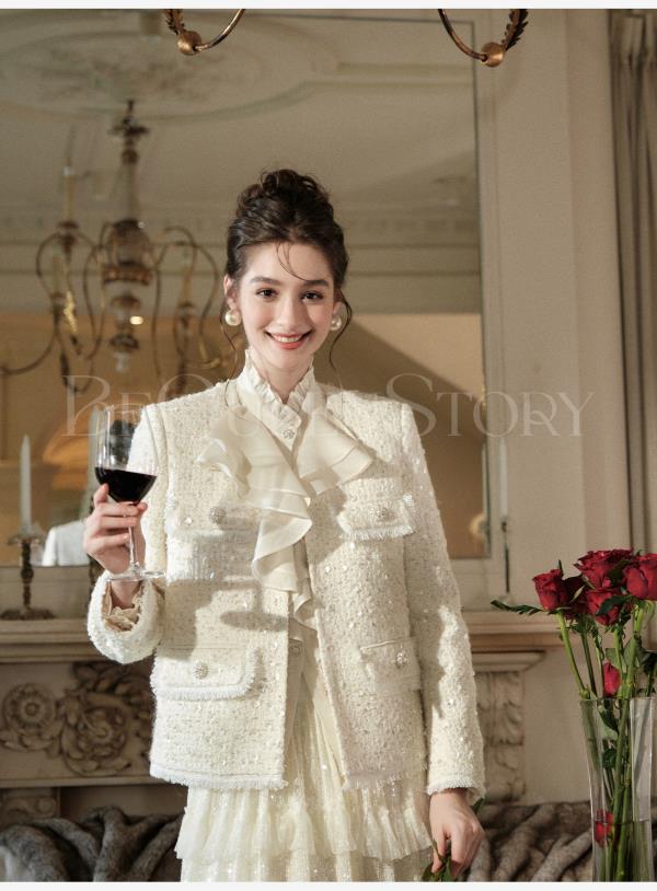 【孤品样衣,不退不换】【暮雪苍兰】轻奢羊毛混纺重工定制珠片V领正肩小香风外套