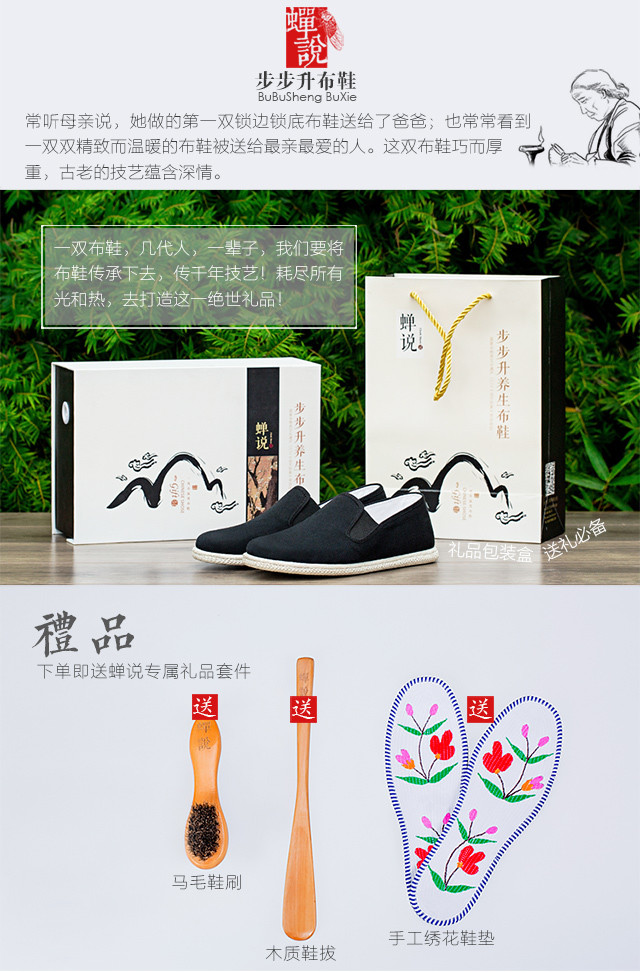 蝉说男鞋中国风 原创中式休闲鞋 纯棉软底透气北京手工布鞋男士 深蓝色