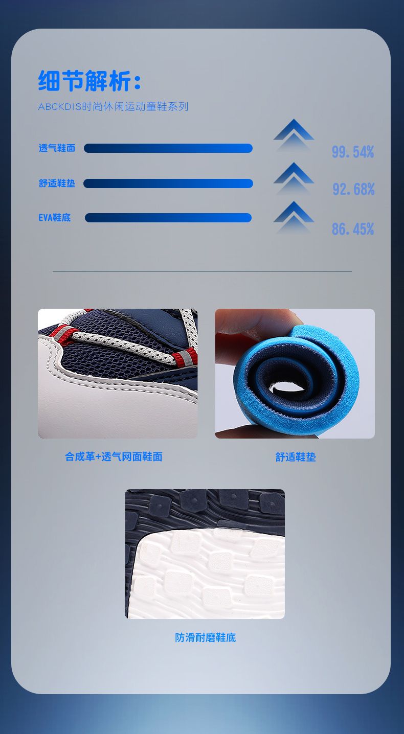 Abckids男童鞋子秋季新款儿童运动鞋网面透气男孩休闲老爹鞋28-38
