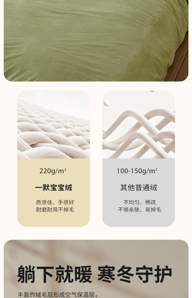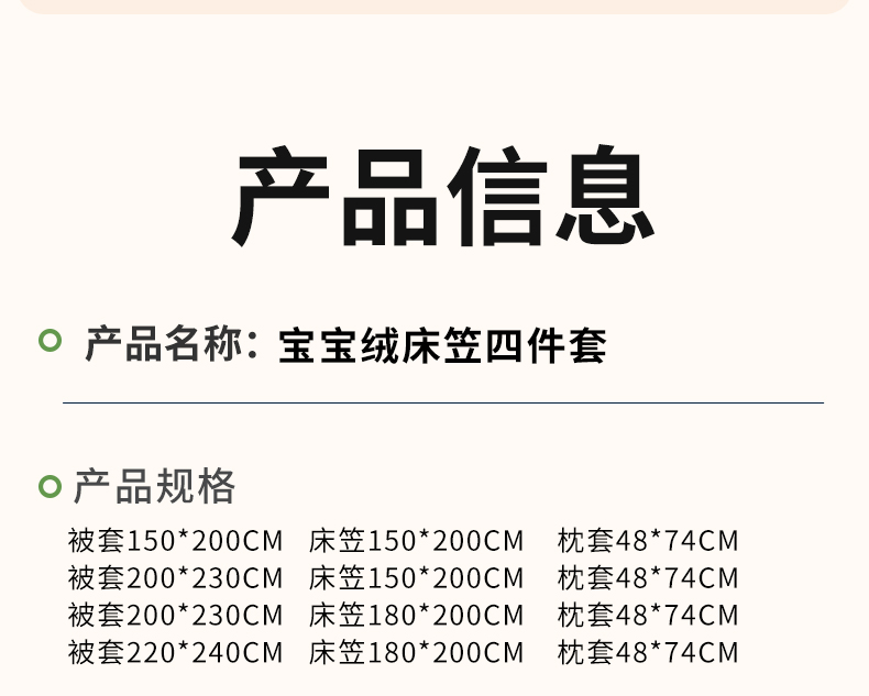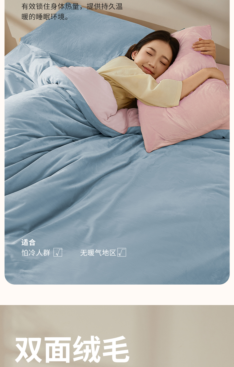 一默 宝宝绒床笠四件套 宝宝绒暖和亲肤 A类标准 冬季温暖必备;耐磨耐用防静电,可水洗可机洗
