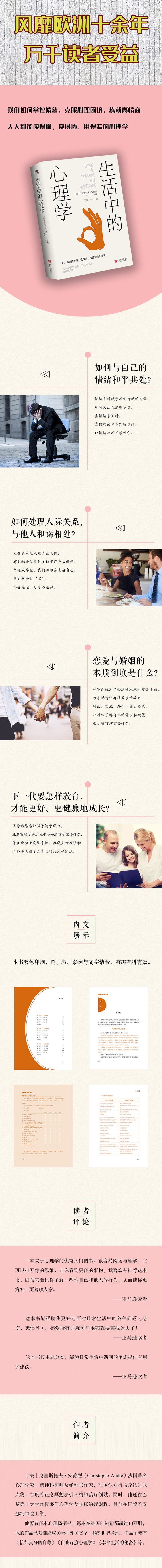 《生活中的心理学》是由法国心理学家克里斯托夫·安德烈主编,多位心理学家联袂编写的心理学著作,多次再版,备受大众喜爱。