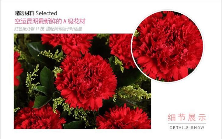 热烈的红色康乃馨,配上暖暖的红色系包装,徜徉在的幸福的花园里,温暖在心里涌起,明媚的阳光悄然洒满我们的心底!