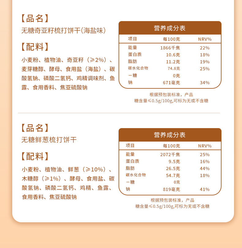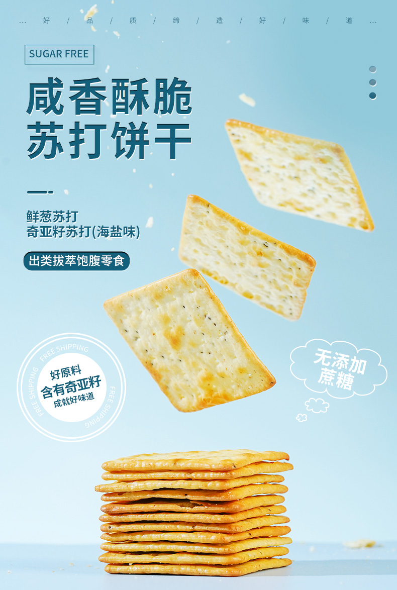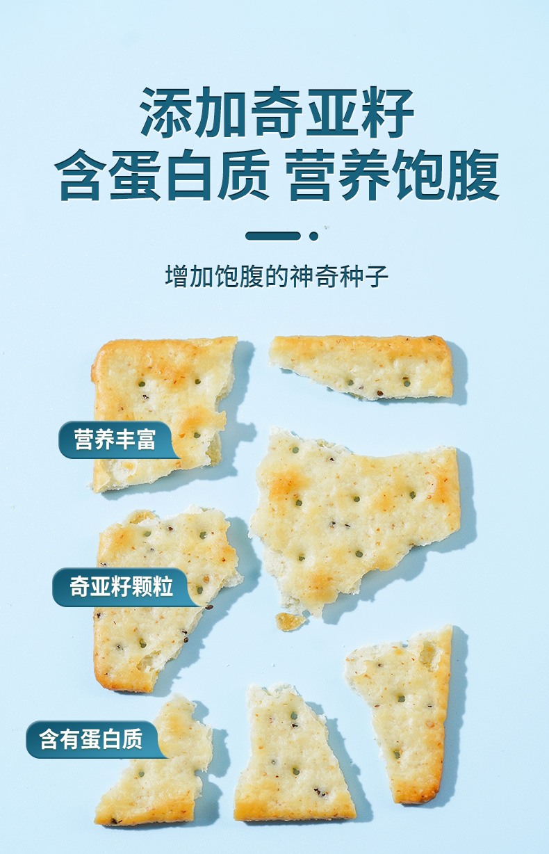 轻食主义新宠 奇亚籽饼干无糖配方 无糖奇亚籽梳打饼干20包*25g海盐味咸味饼干 咸香酥脆