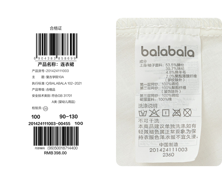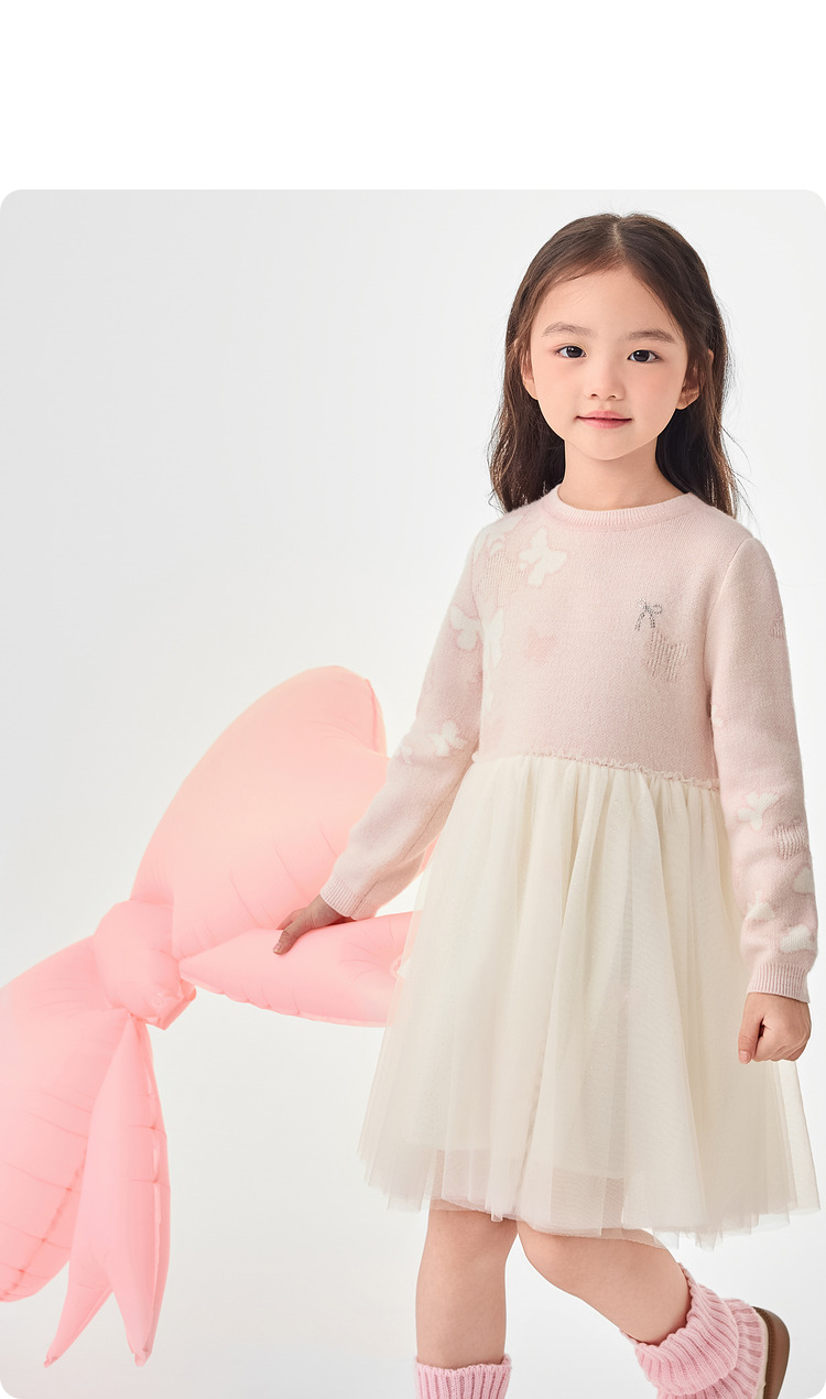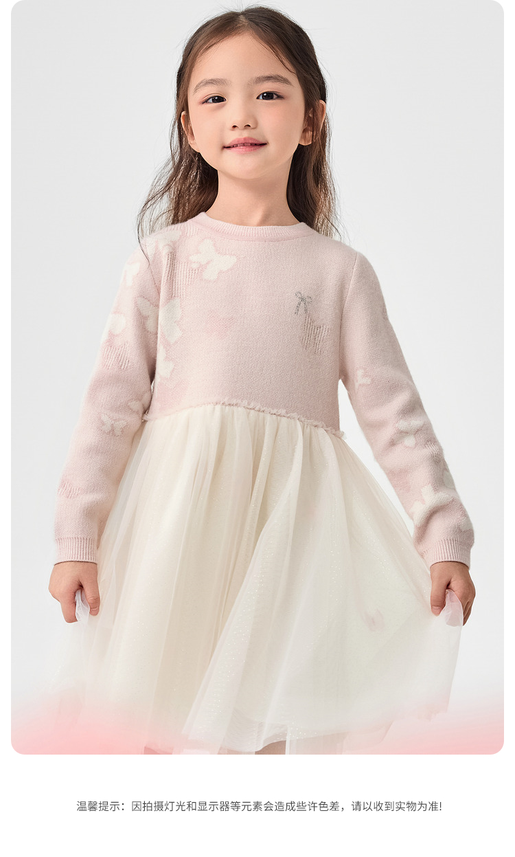 巴拉巴拉童装儿童连衣裙女童秋冬装网纱裙子针织小童宝宝洋气甜美