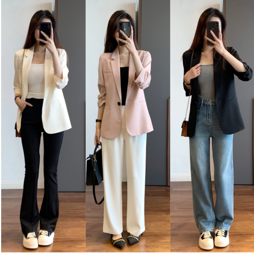 ✅清爽又干练,一粒扣气质时髦钟爱的敲赞薄款百搭西装!