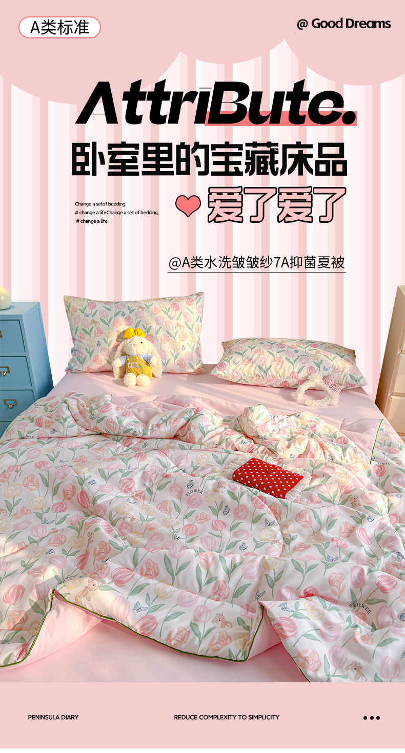 【品牌直发】加倍生活 A类水洗皱皱纱7A抑菌夏被夏凉被空调被-小熊院长系列yc0311003