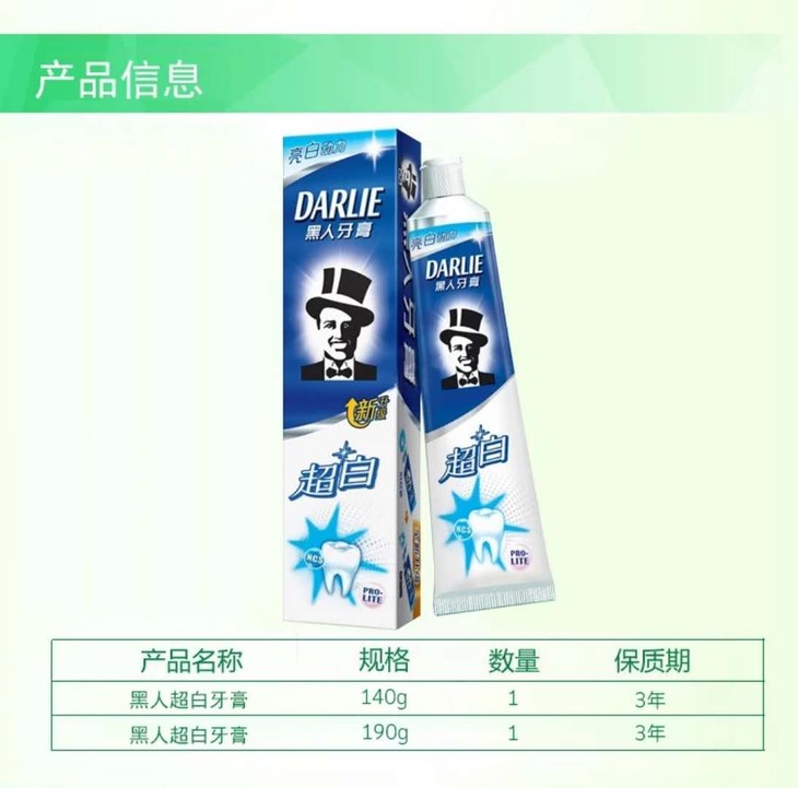 黑人牙膏超白亮白动力 190g