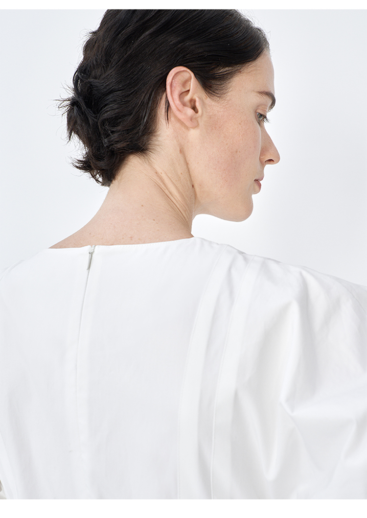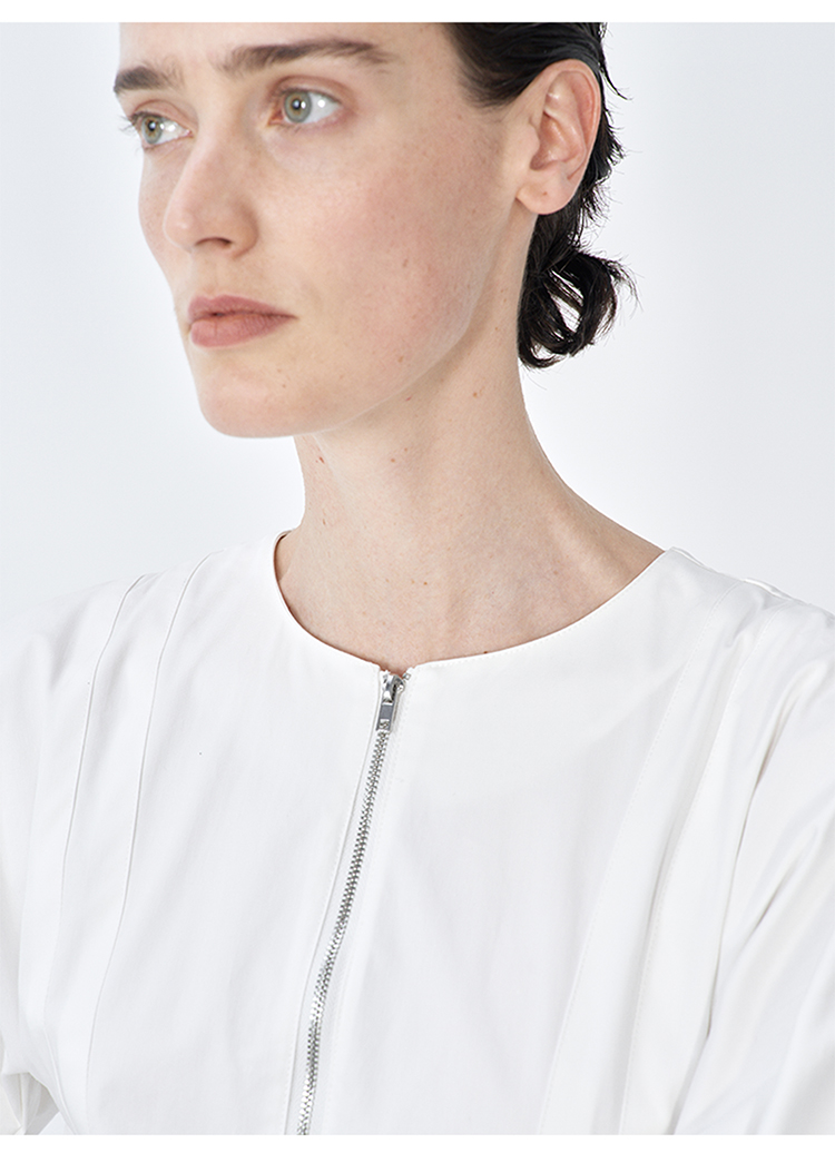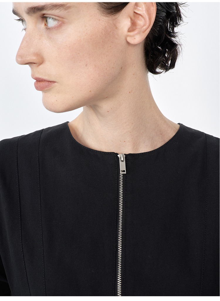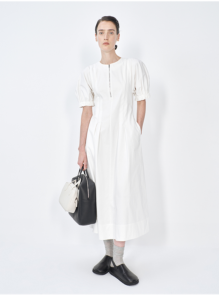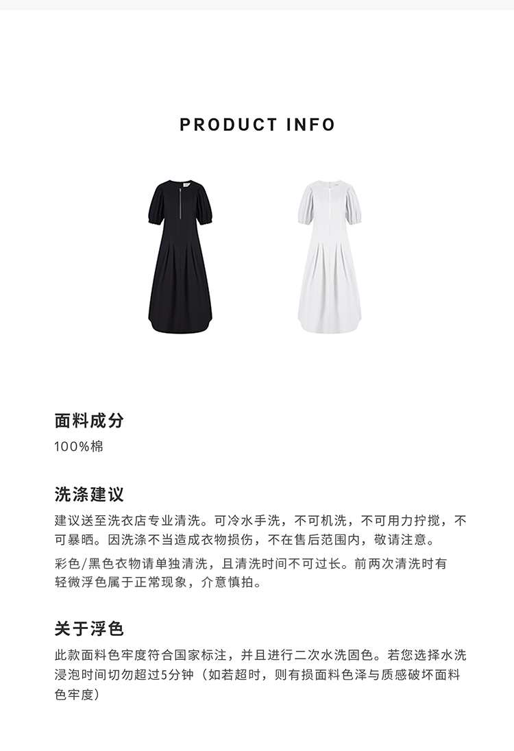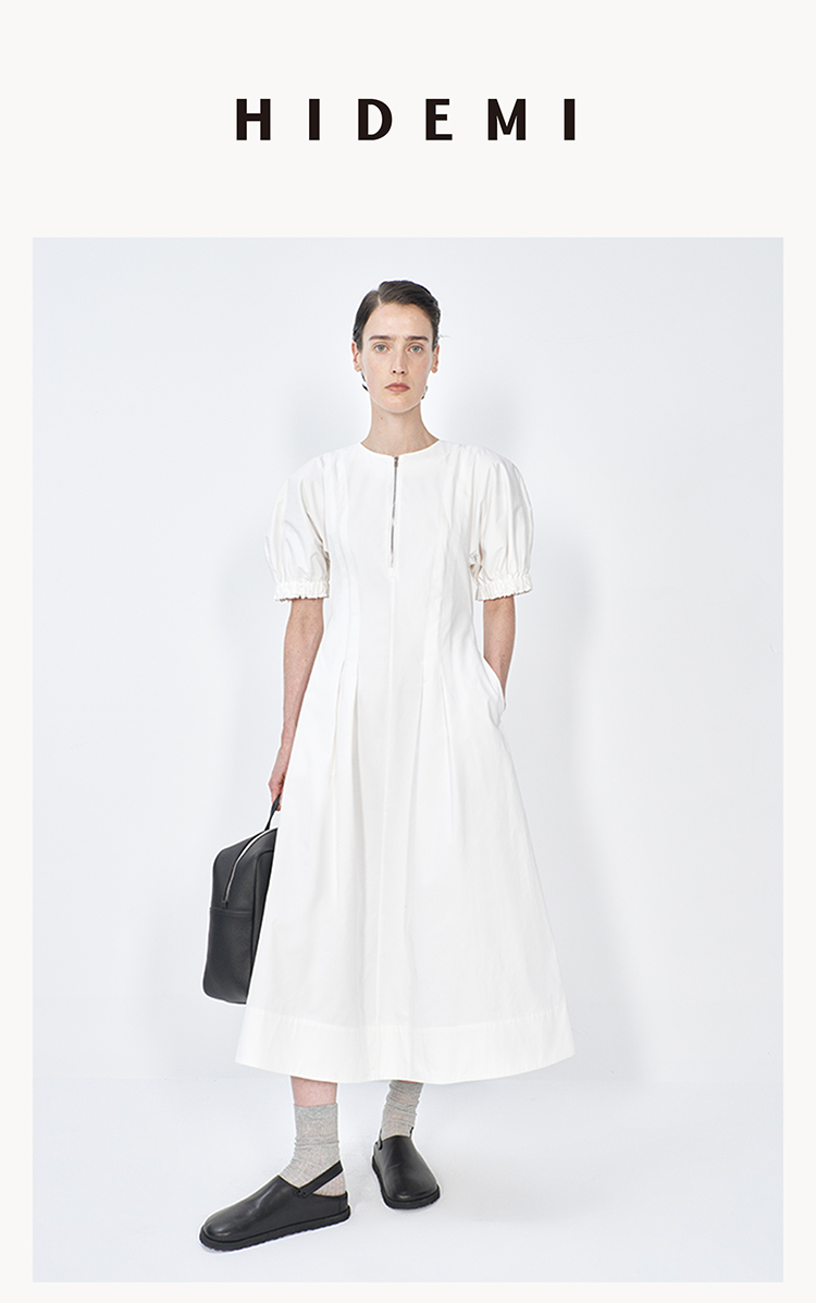 HIDEMI 极简显瘦小圆领立体收腰拉链泡泡袖连衣裙