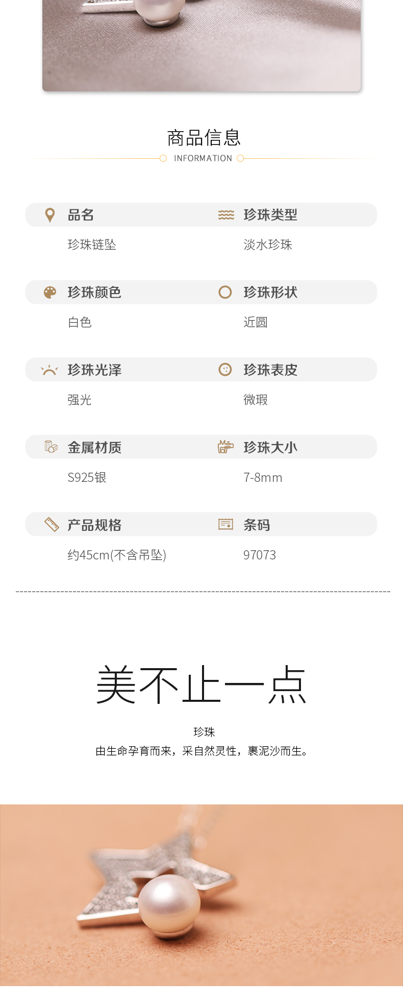 美裕 【星月】银925淡水珍珠吊坠链 (送银链)7-8mm白 97073