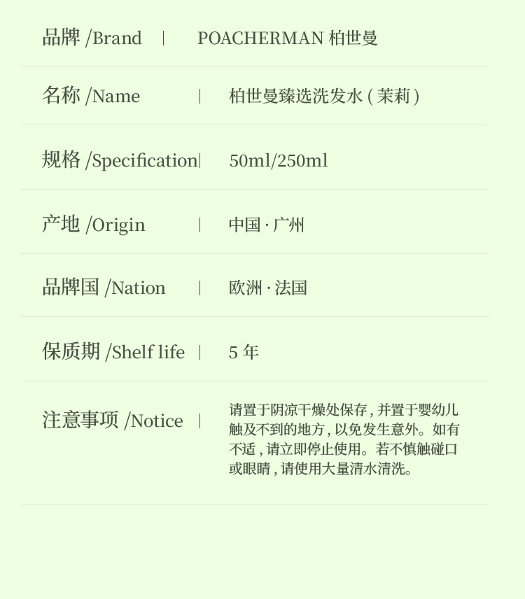 柏世曼臻选茉莉香氛洗发水 温和清洁 改善修复受损深层滋养洗发乳