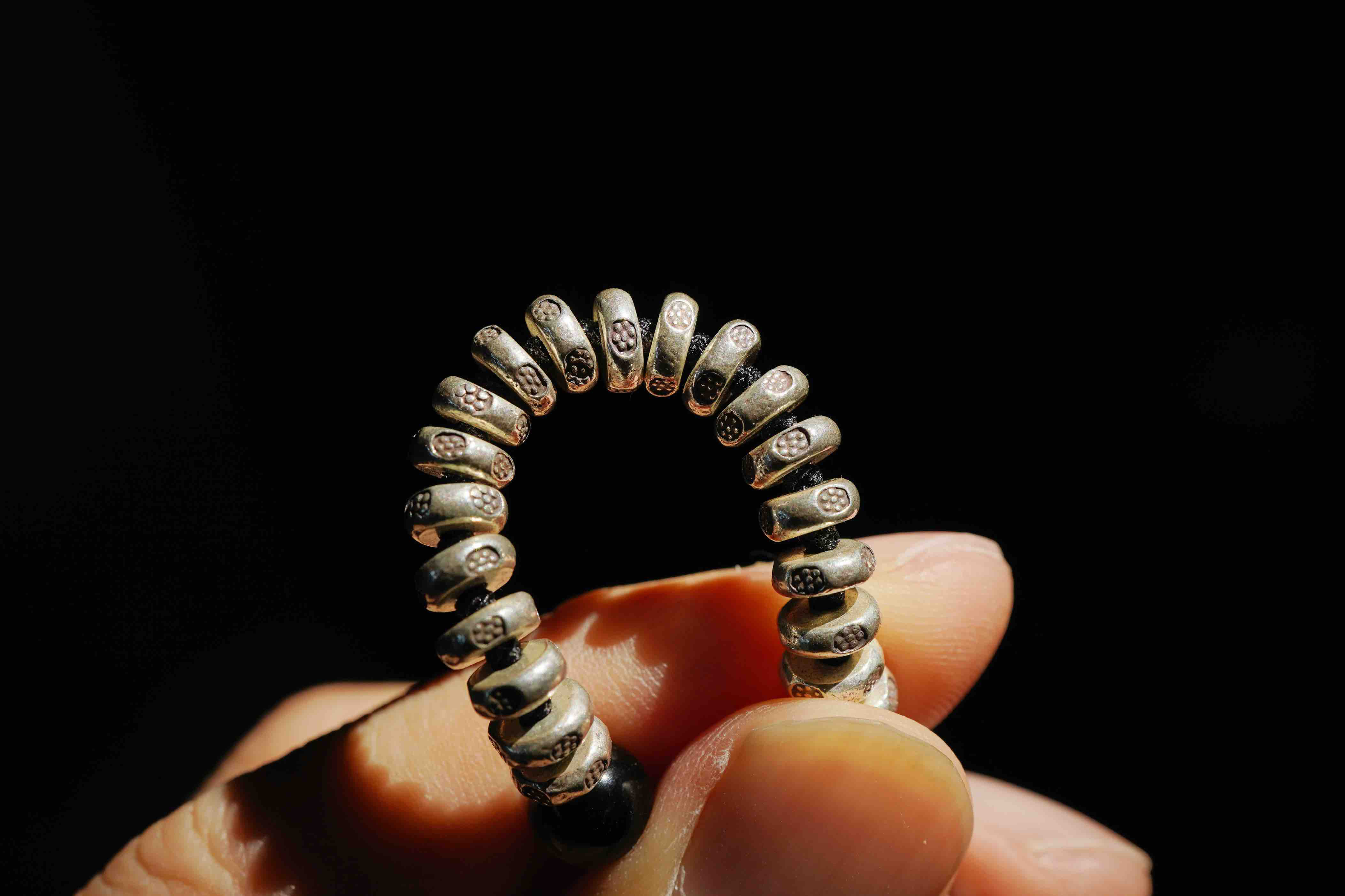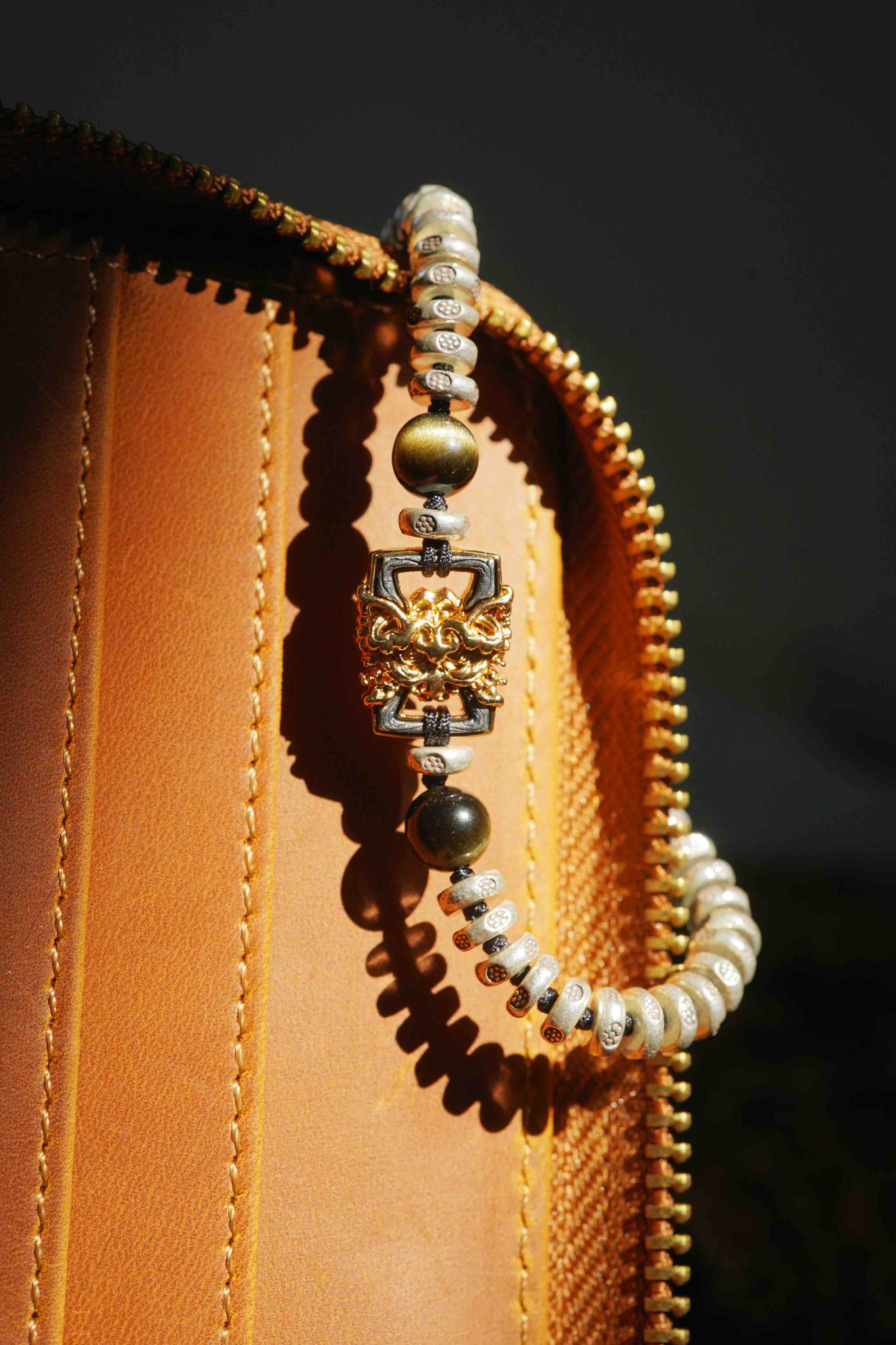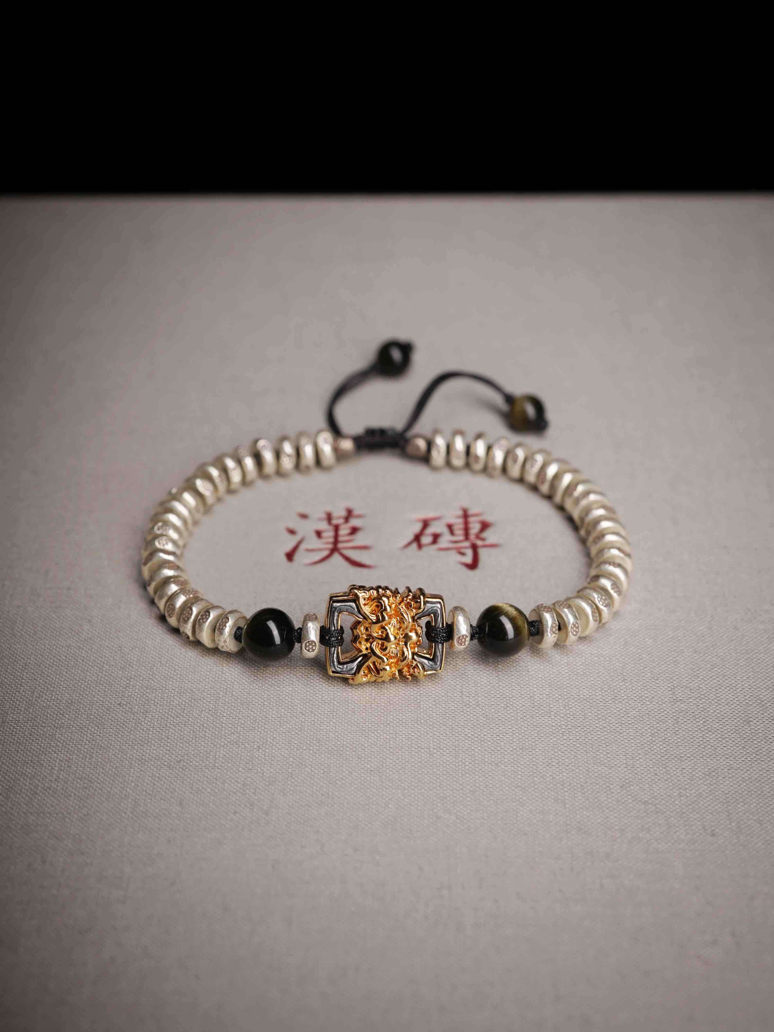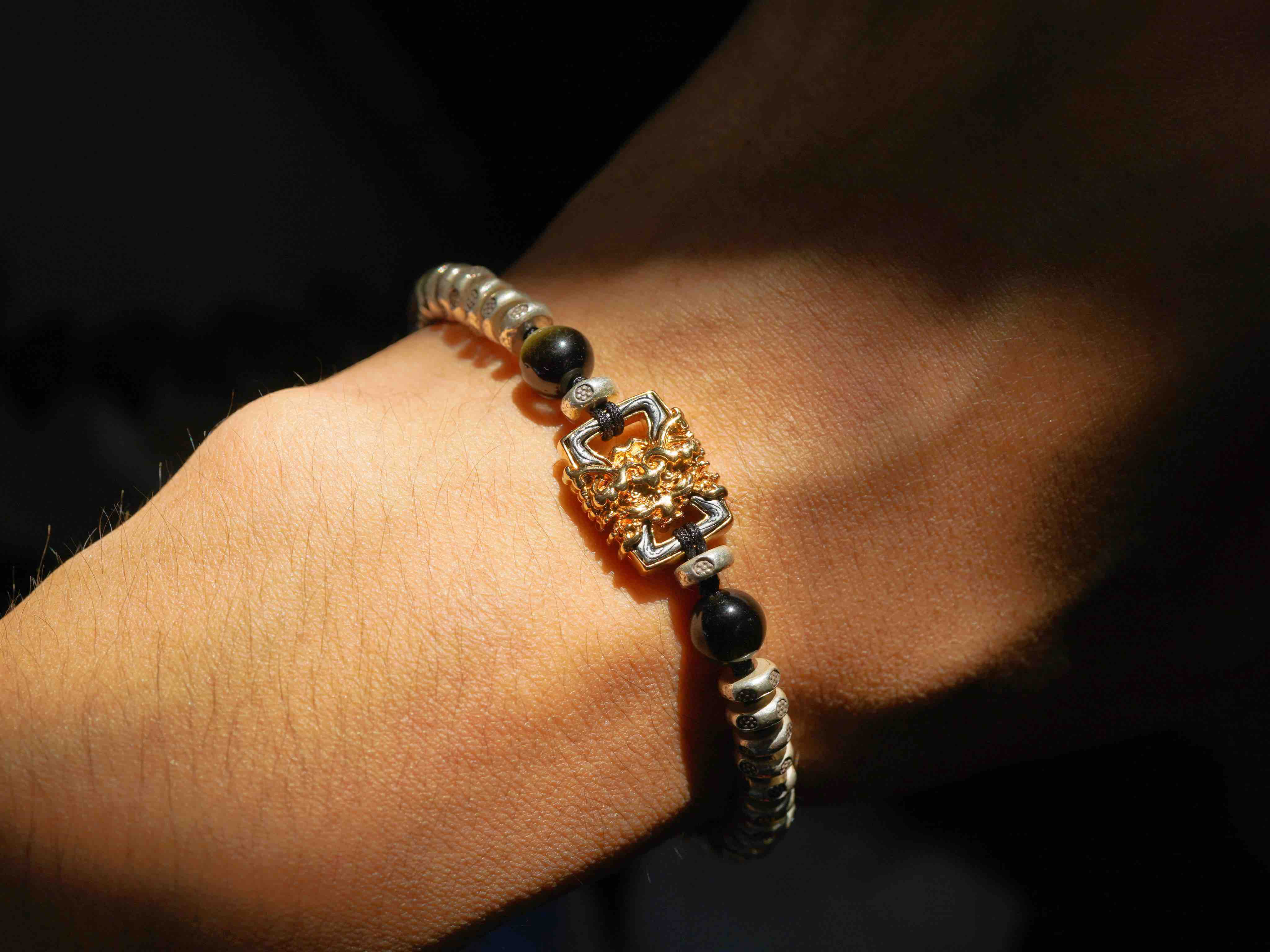 这个月的月历银,男女生都合适。很有力量与分量感,把两种银的工艺做的很极致。一种是泰国手工银的工艺,每一个小花儿都是手工敲打出来的,很细腻。另外一种是18k金相同的银镶嵌工艺,力量感十足的藏式兽面。两种纯银的结合,再用黑曜石牢牢固守住。