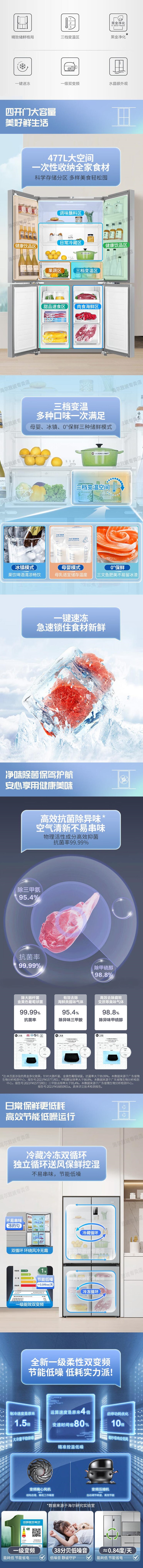 海尔冰箱(202766 )四开门多门双变频风冷无霜除味保鲜节能省电双开门家用大容量十字对开门电冰箱 【水晶银477升 母婴三档变温 黑金净化】BCD-477WGHTDEDSP