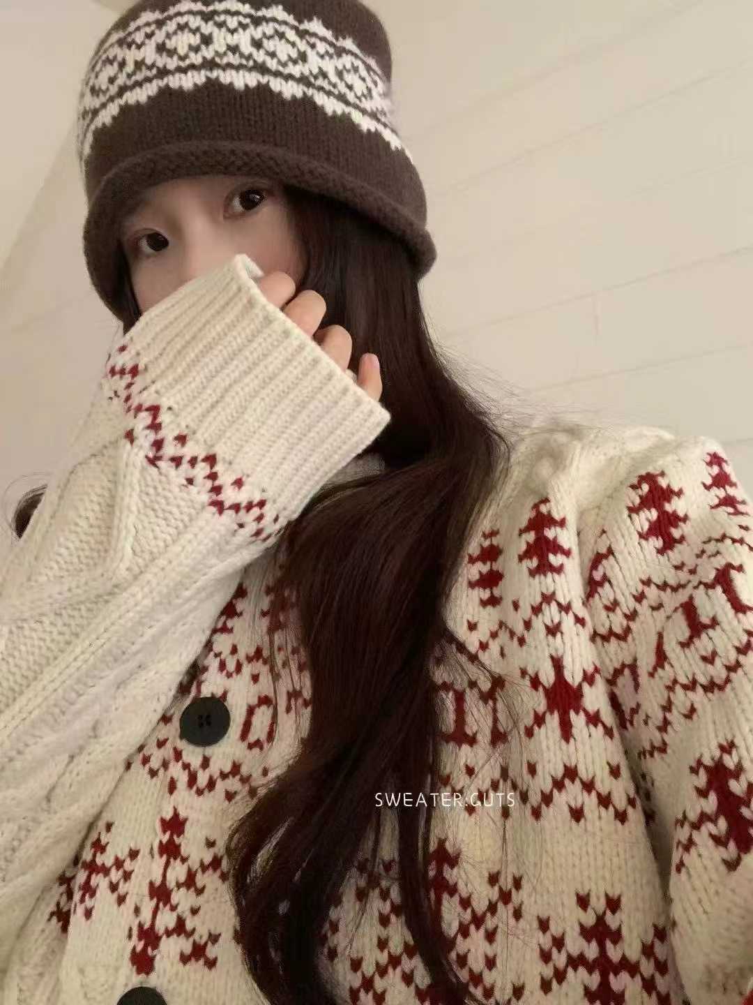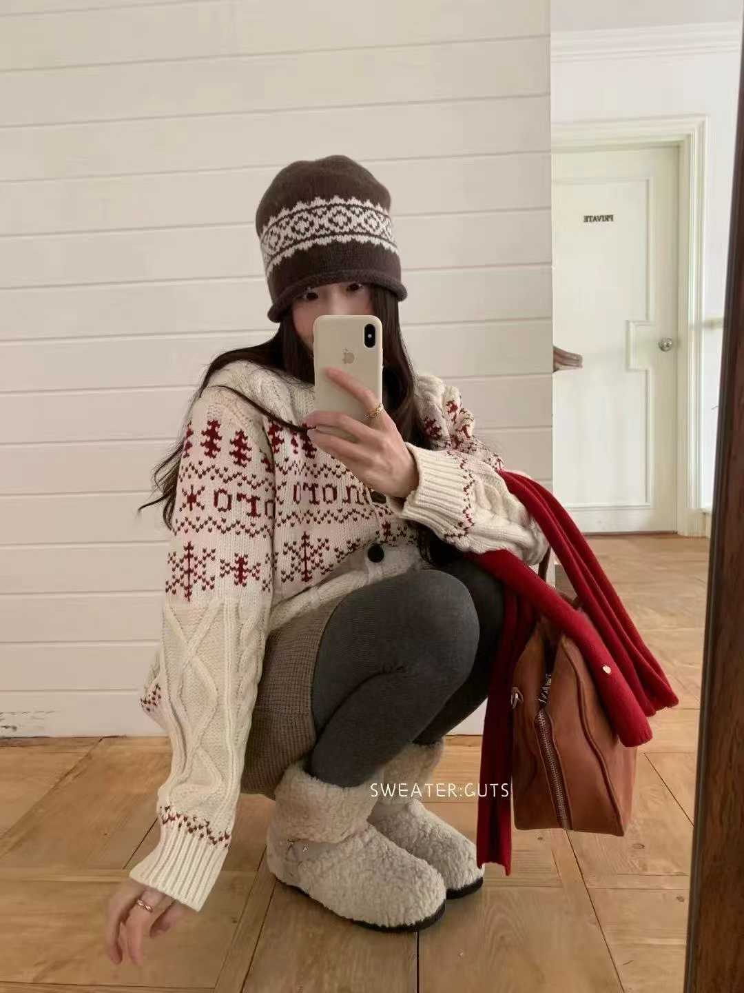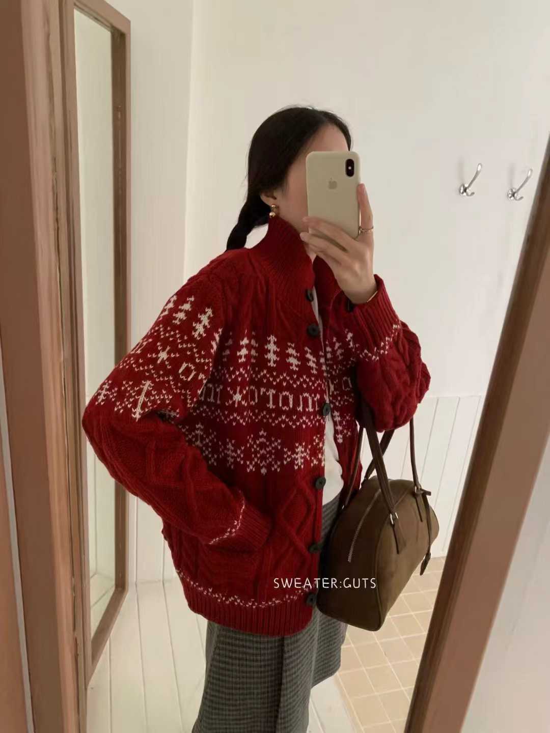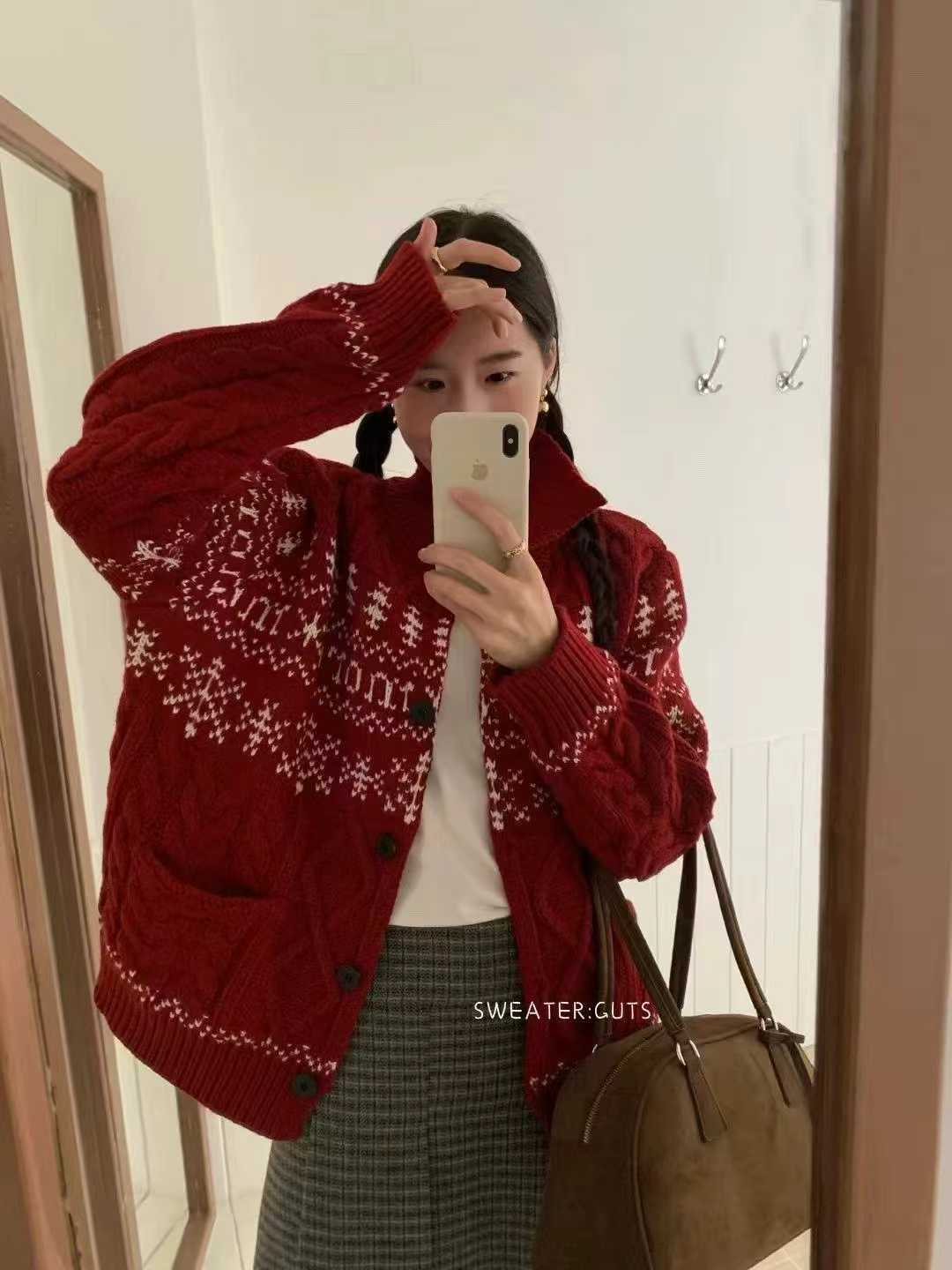 GZ复古费尔岛宽松翻领开衫毛衣(LH)(LD)-纪念日百货168645224