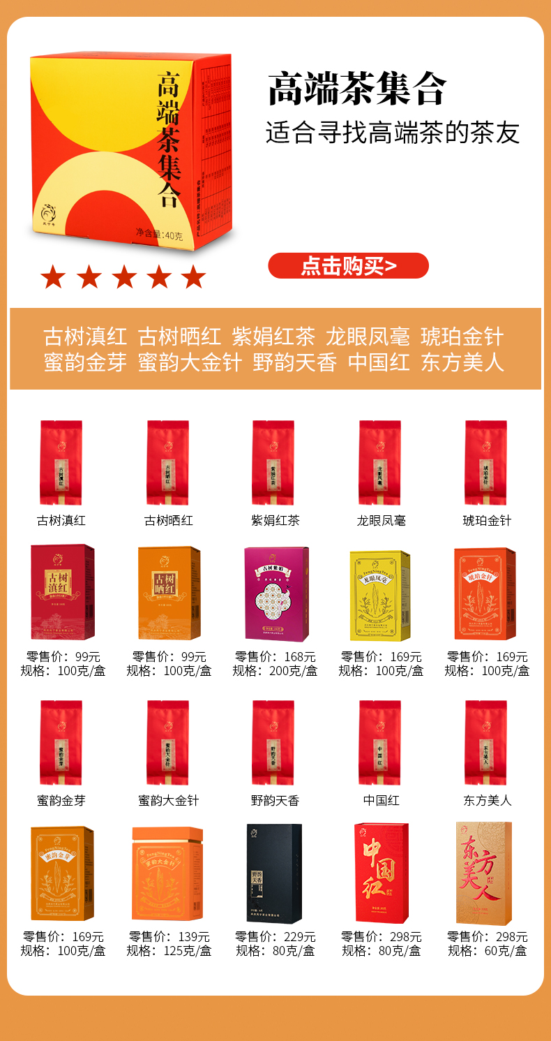 凤宁号高端集合试饮装10包(10款不同的高端滇红茶)