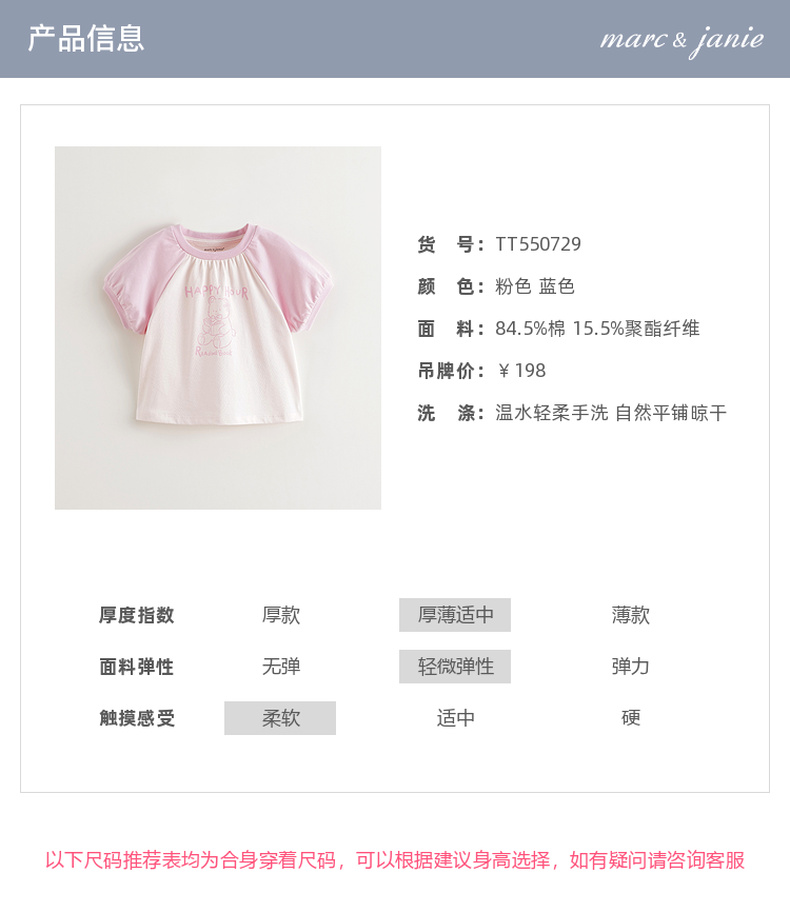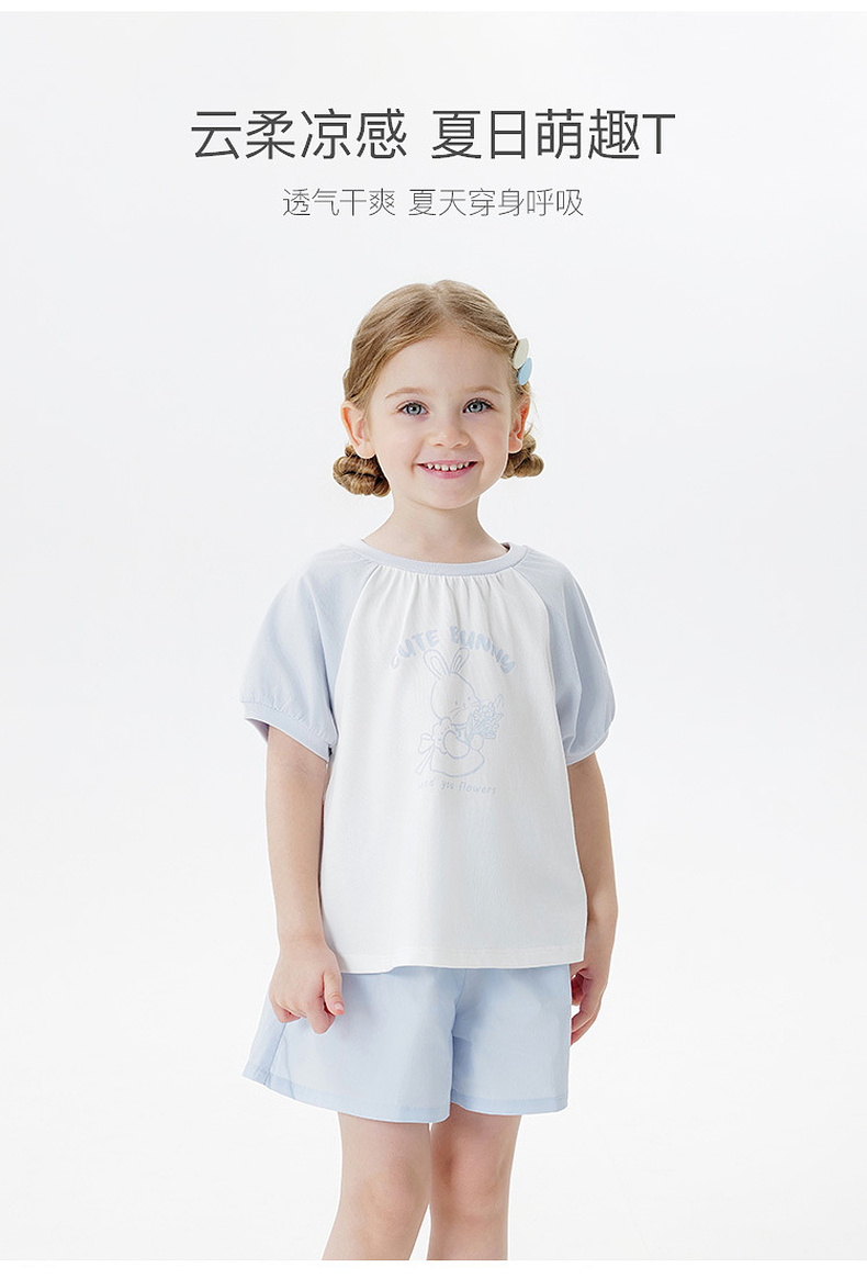【凉感T】马克珍妮女童萌趣夏日云柔短袖T恤 宝宝夏装新款550729