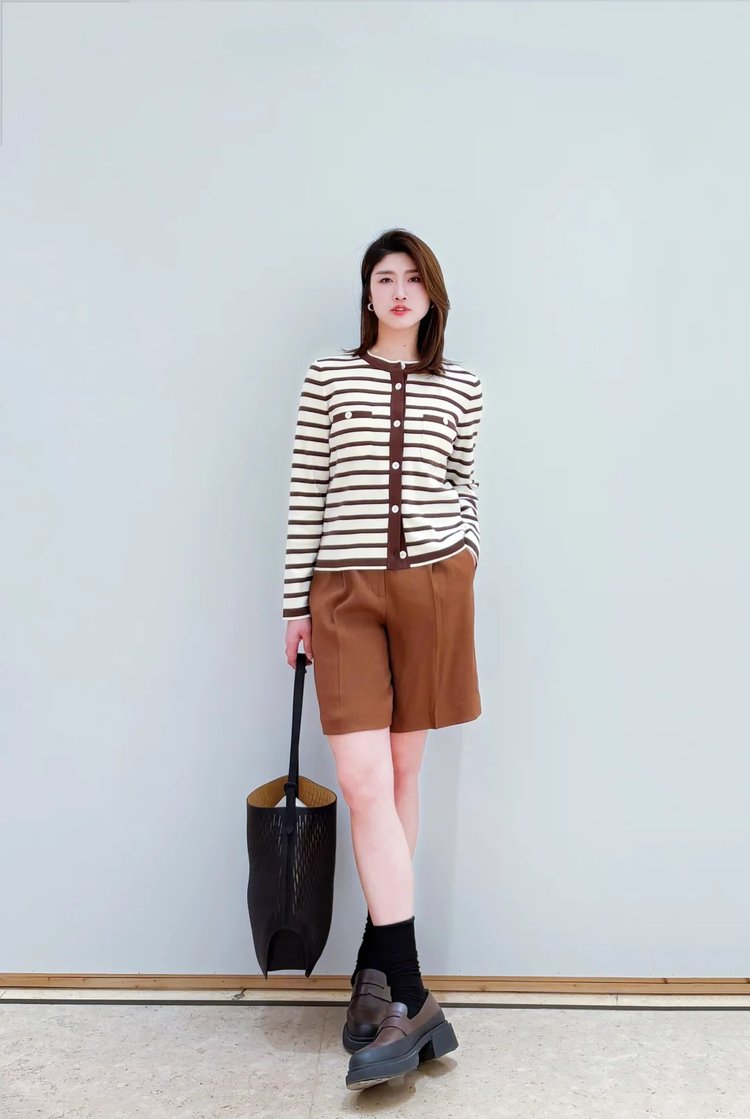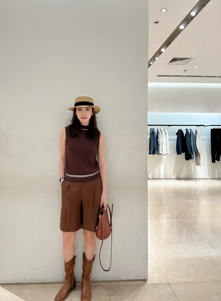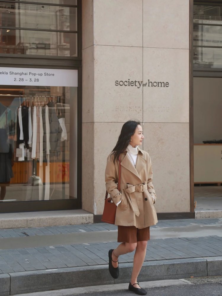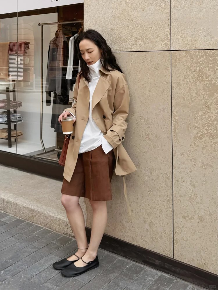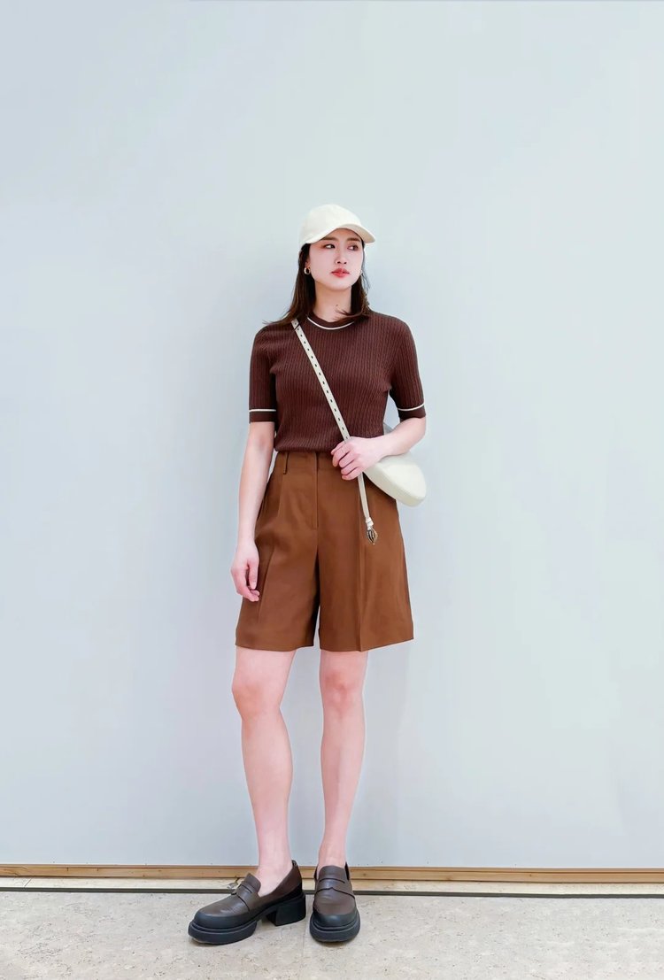 高腰剪裁重塑比例,让腿部线条看起来更加修长。