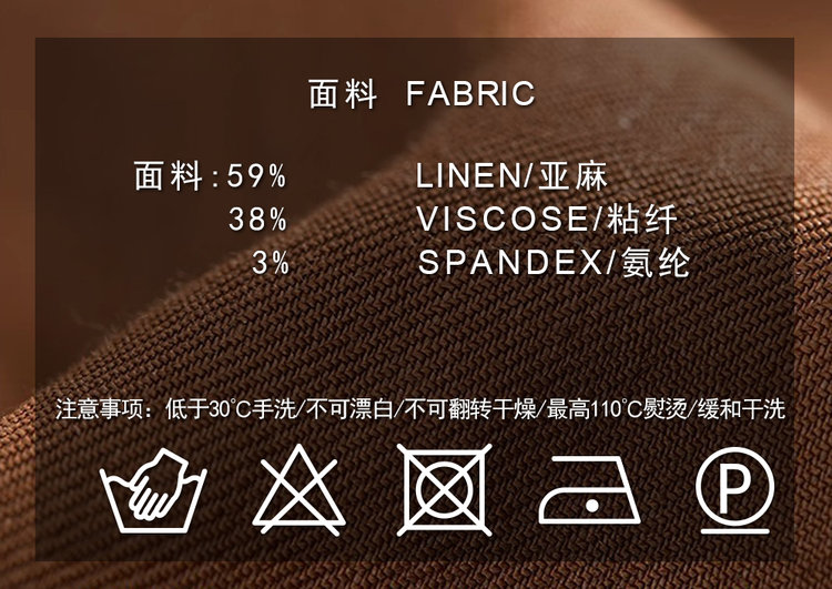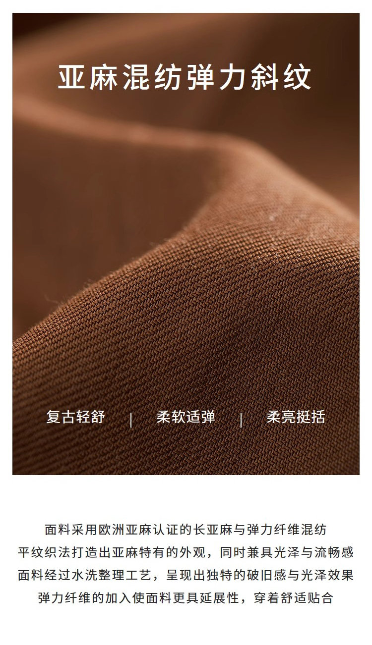 面料采用欧洲亚麻认证的长亚麻与弹力纤维混纺
