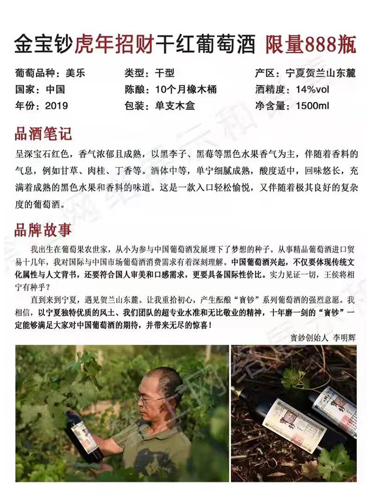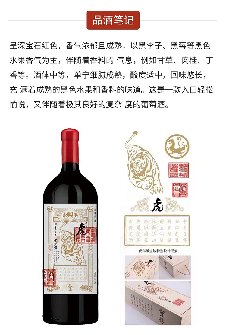 国产红酒宁夏美乐精选级干红葡萄酒 虎年定制款 礼盒装1瓶