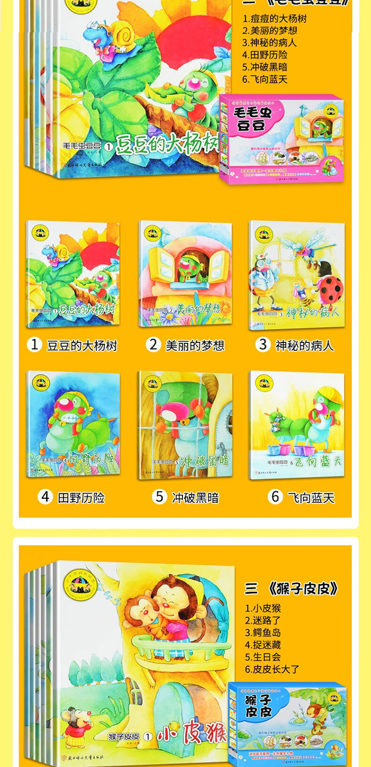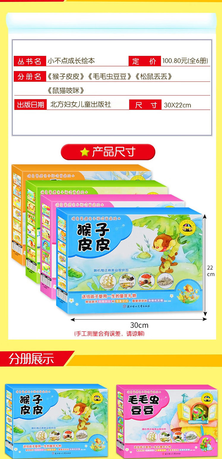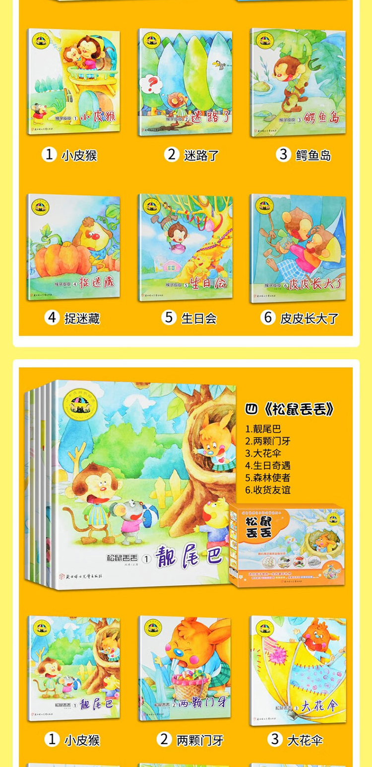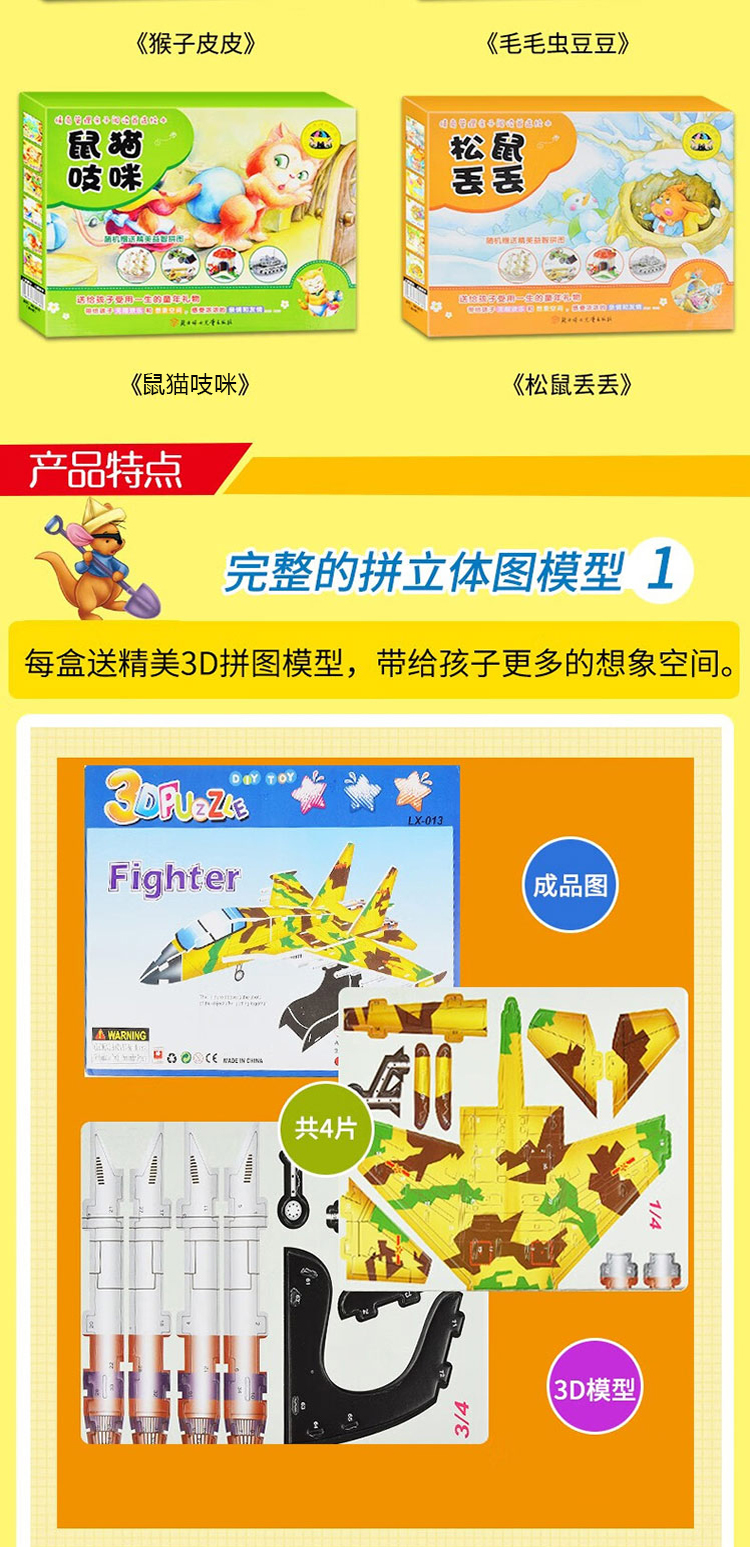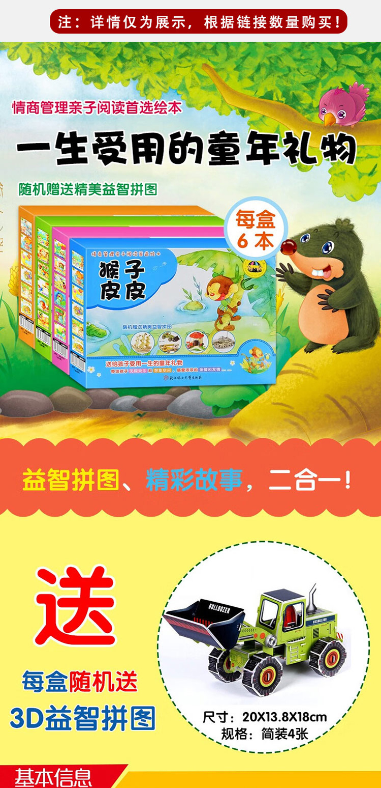 猴子皮皮/松鼠丢丢/鼠猫吱咪/毛毛虫豆豆礼盒绘本 情绪管理亲子阅读绘本 每盒随机赠送3D拼图