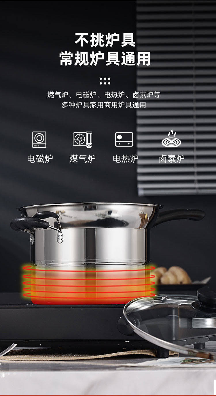 路易菲斯面条锅多功能不锈钢奶锅汤锅电磁炉通用锅