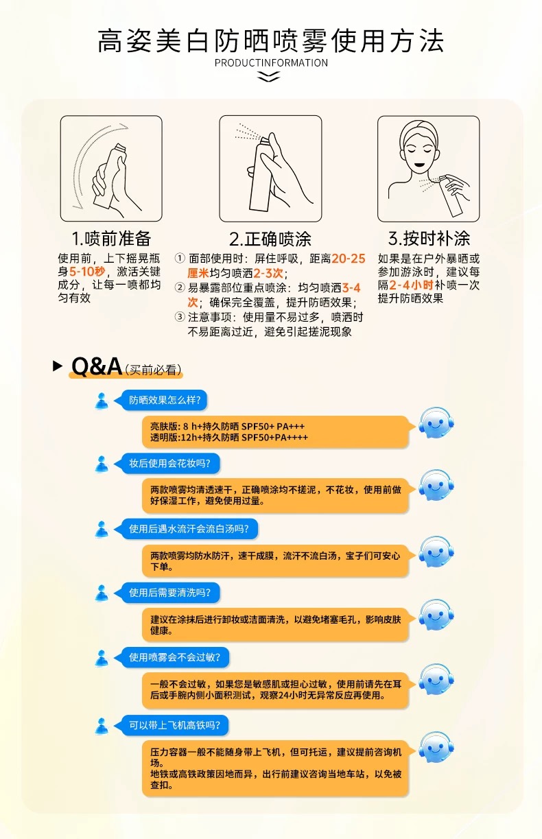 【丁禹兮同款】COGI高姿防晒喷雾120ml 防晒美白隔离养肤面部全身SPF50+高倍防紫外线
