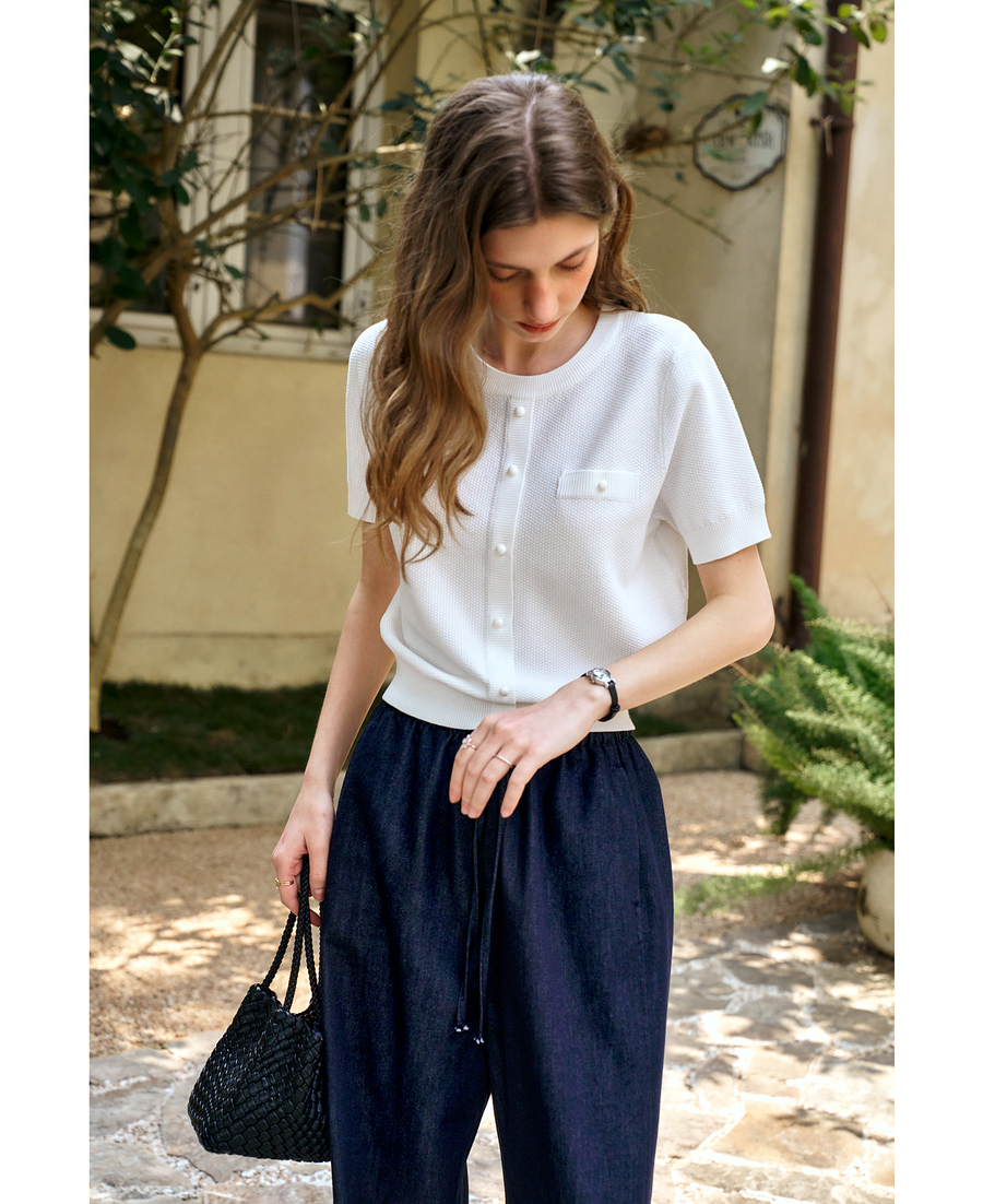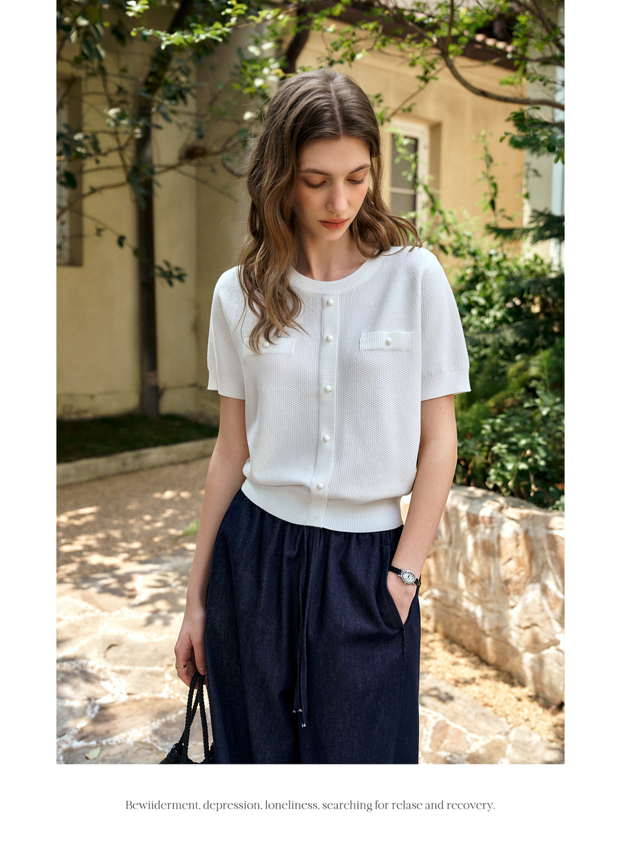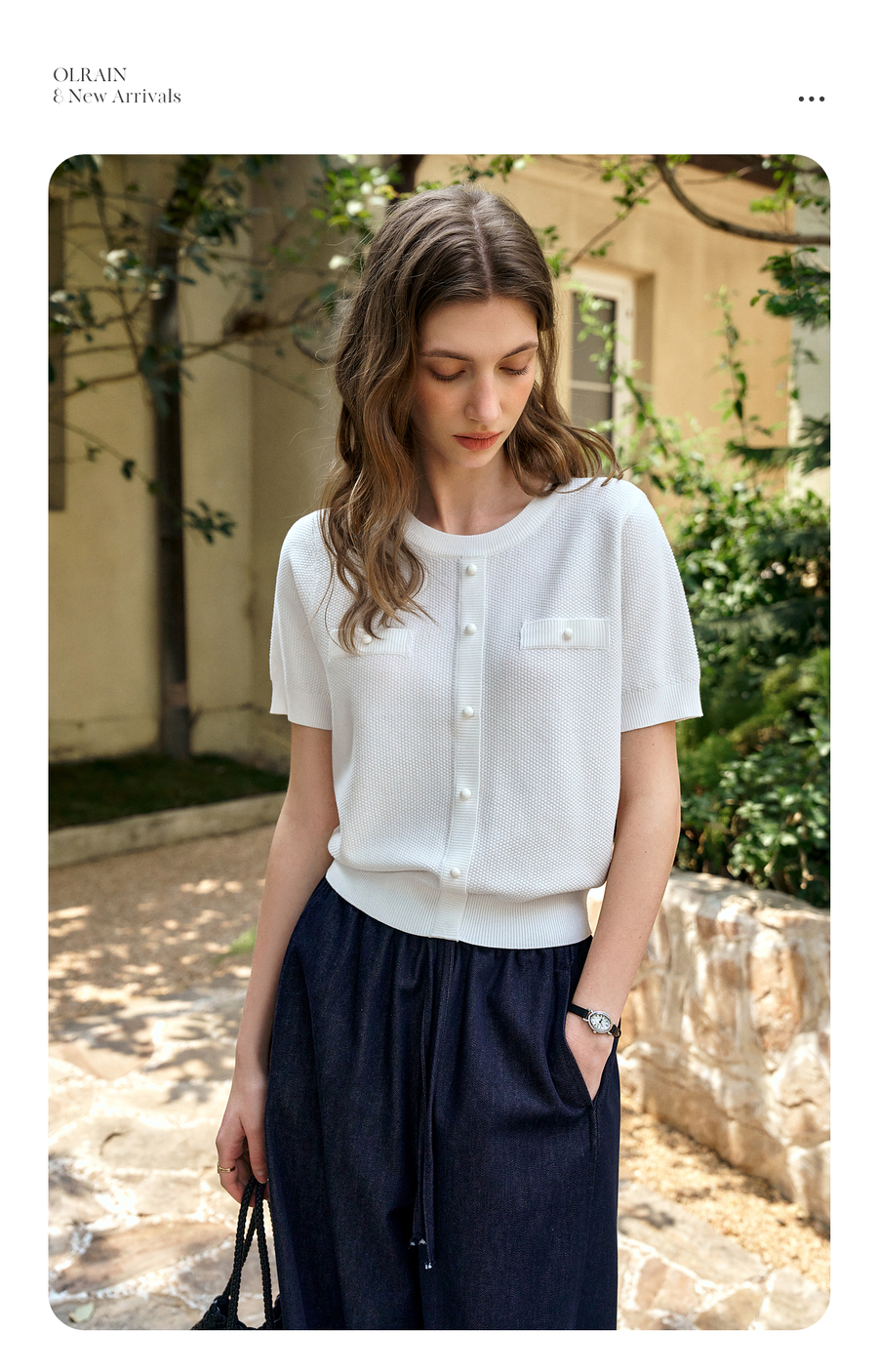 OLrain欧芮儿白色小香风毛针织套头衫女夏季2025年新款薄款打底衫
