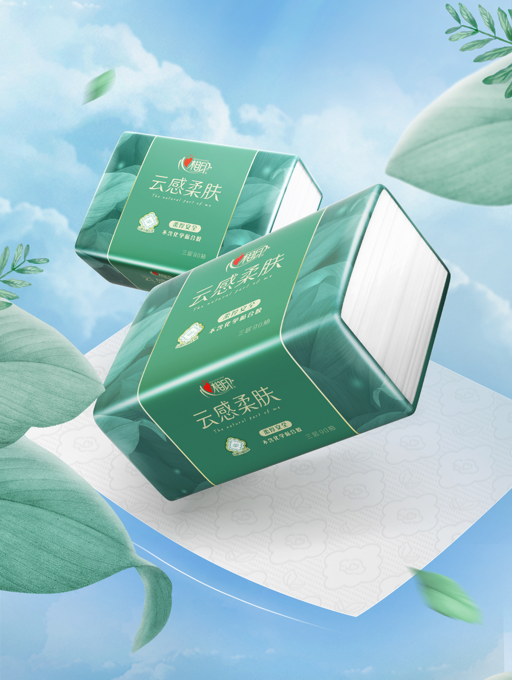 DT17090(箱装)心相印云感系列90抽18包三层立体压花塑装纸面巾箱装