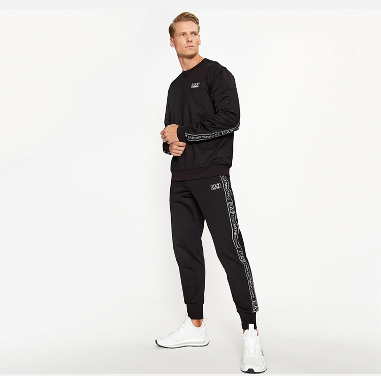 EMPORIO ARMANI EA7 男士棉质字母徽标休闲运动裤 黑色 6RPP54 PJ05Z 1200