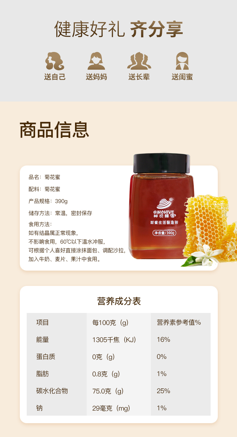 神农蜂语菊花蜜390g