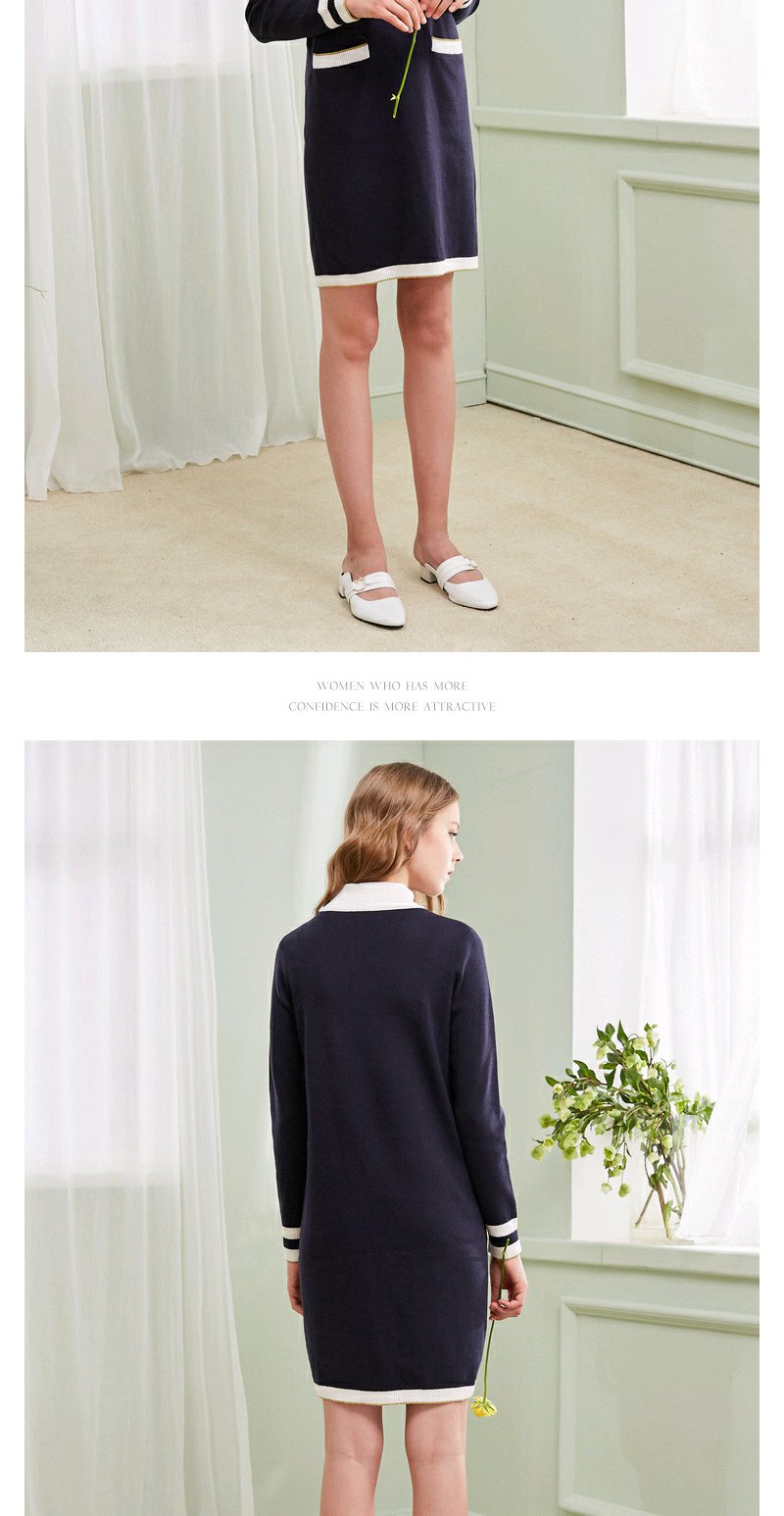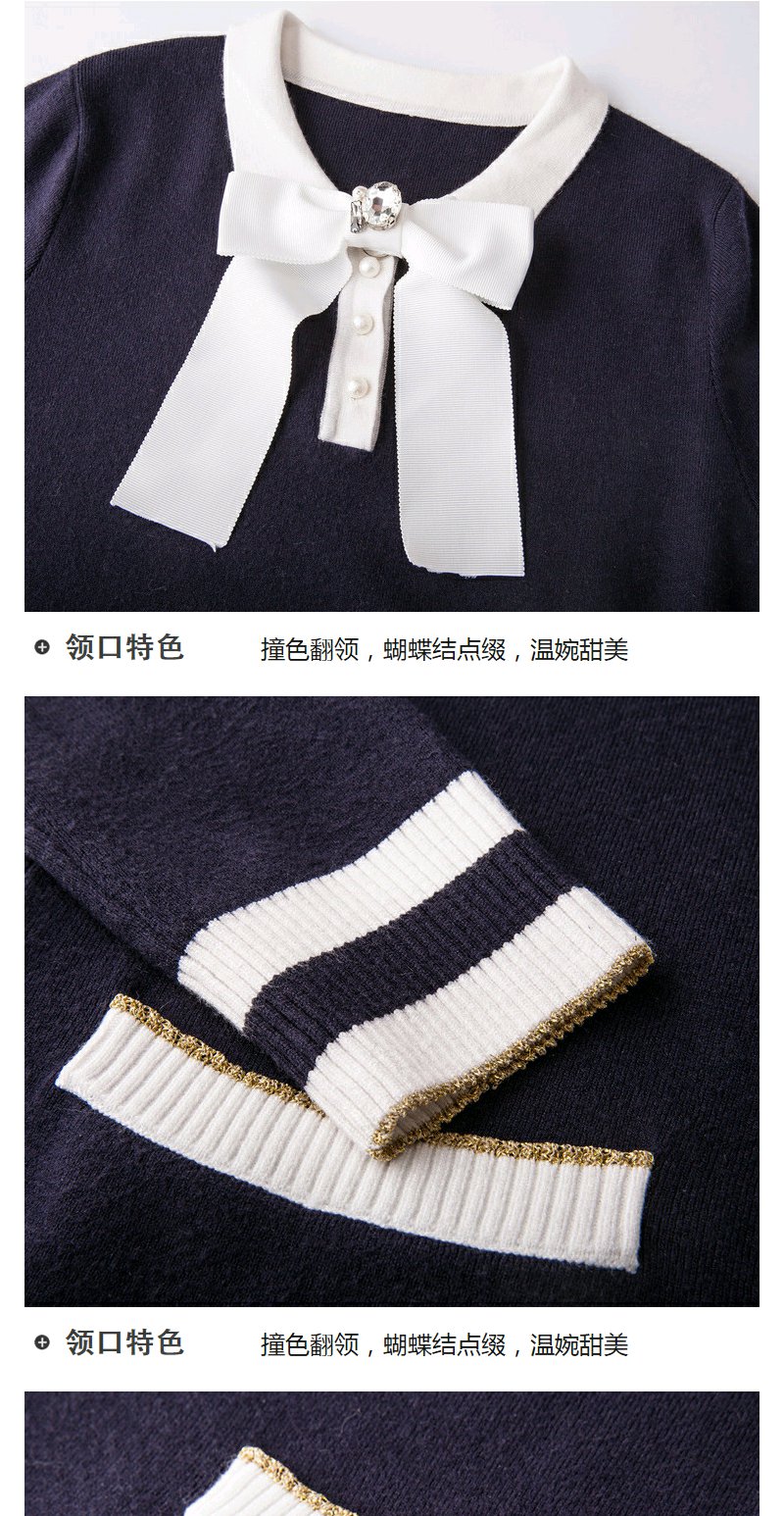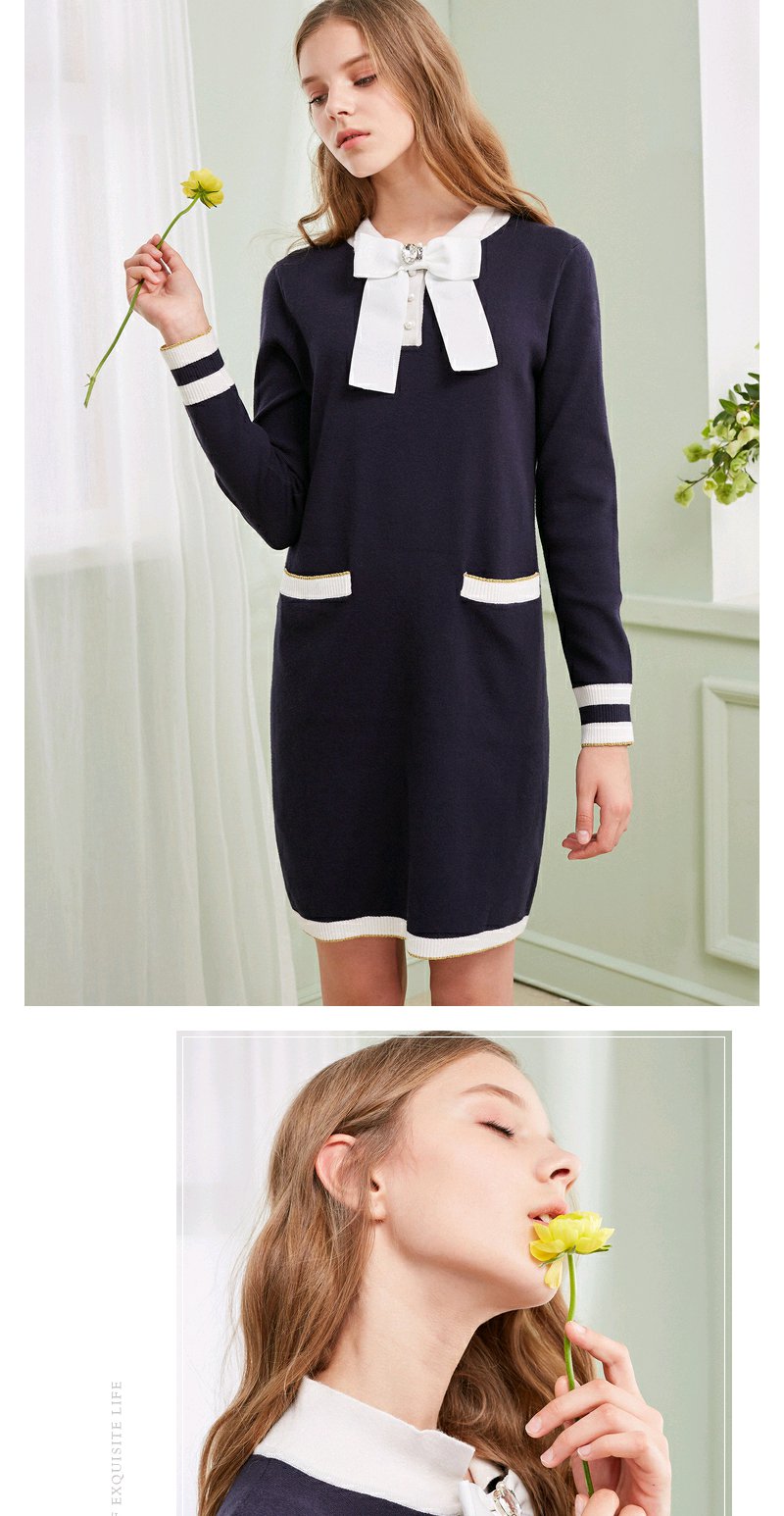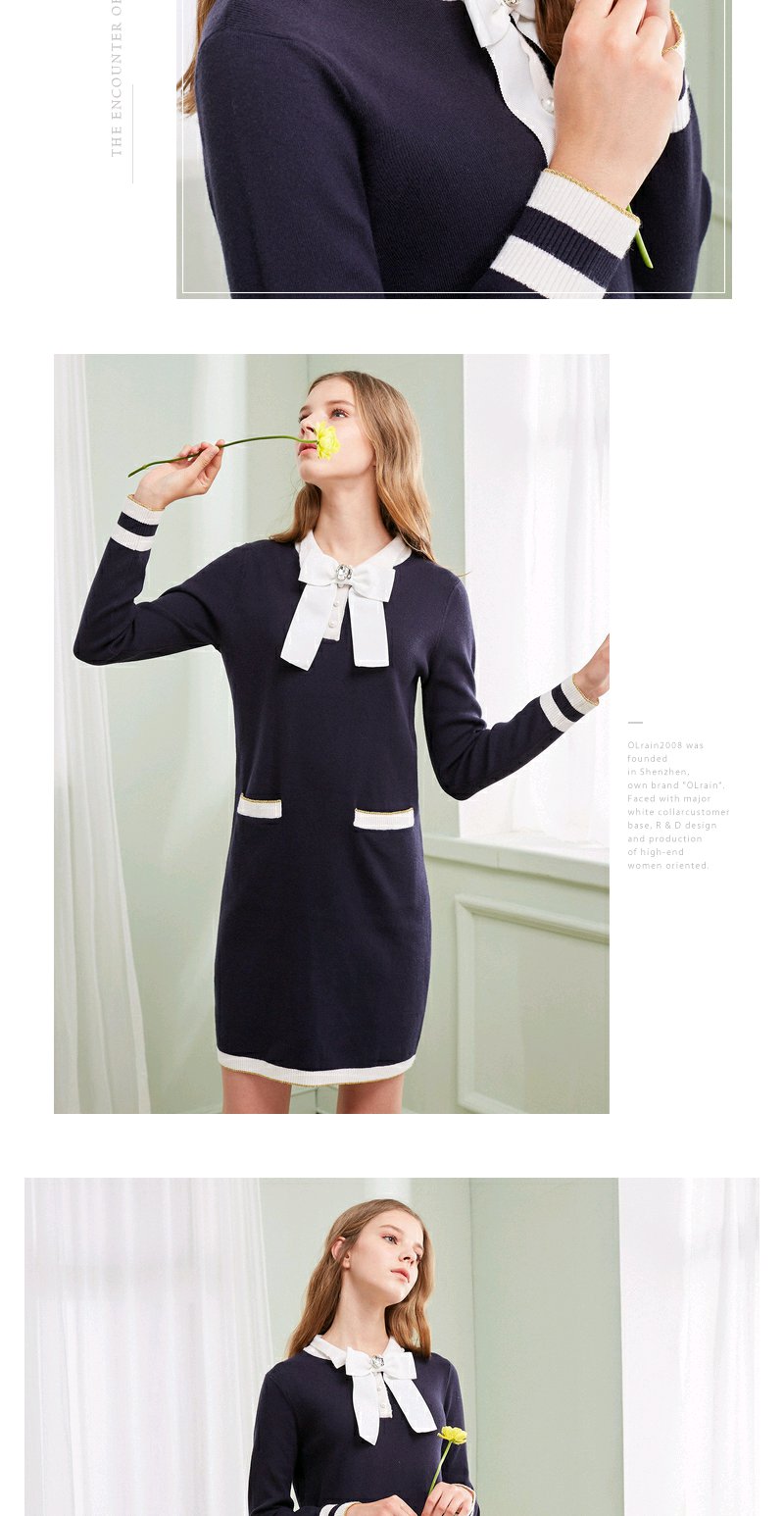 欧芮儿春装新显瘦蝴蝶结系带长袖针织连衣裙女中长款