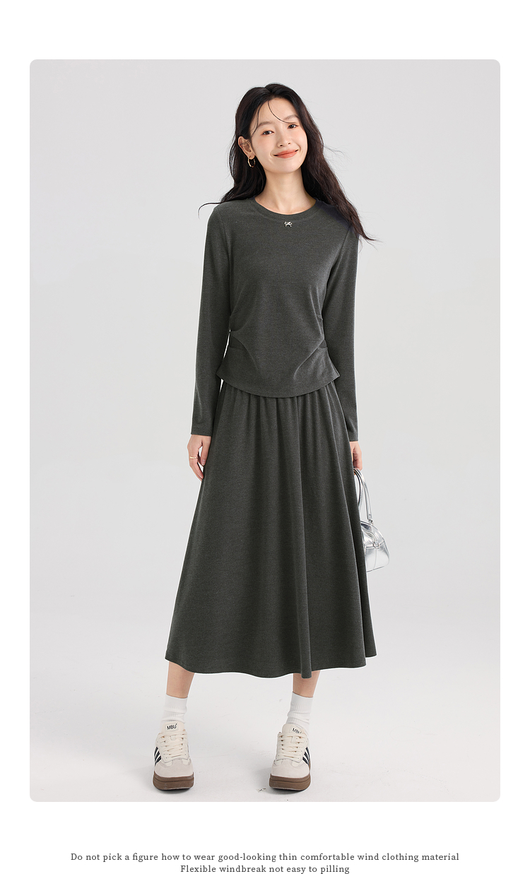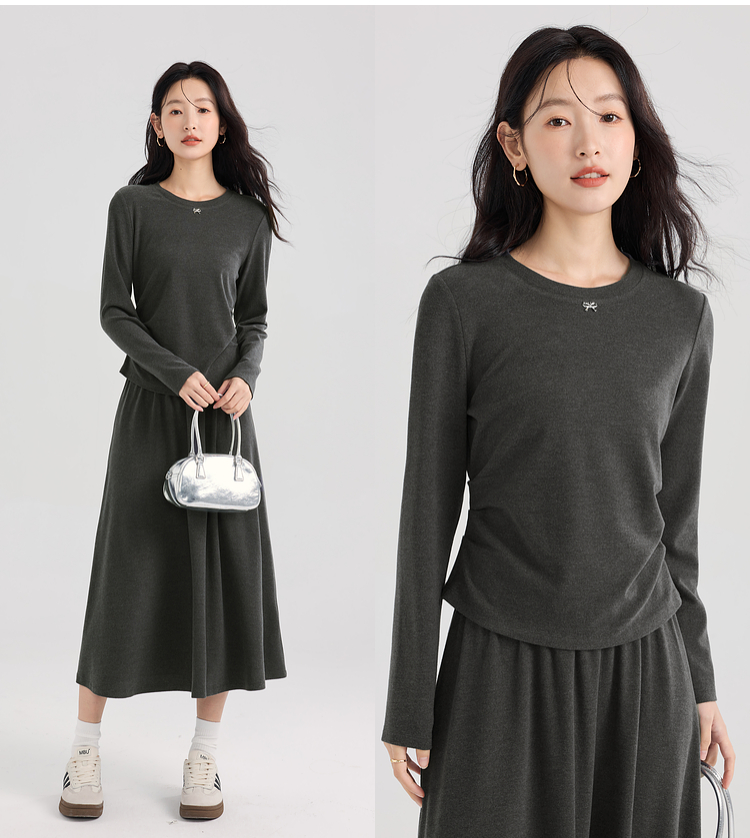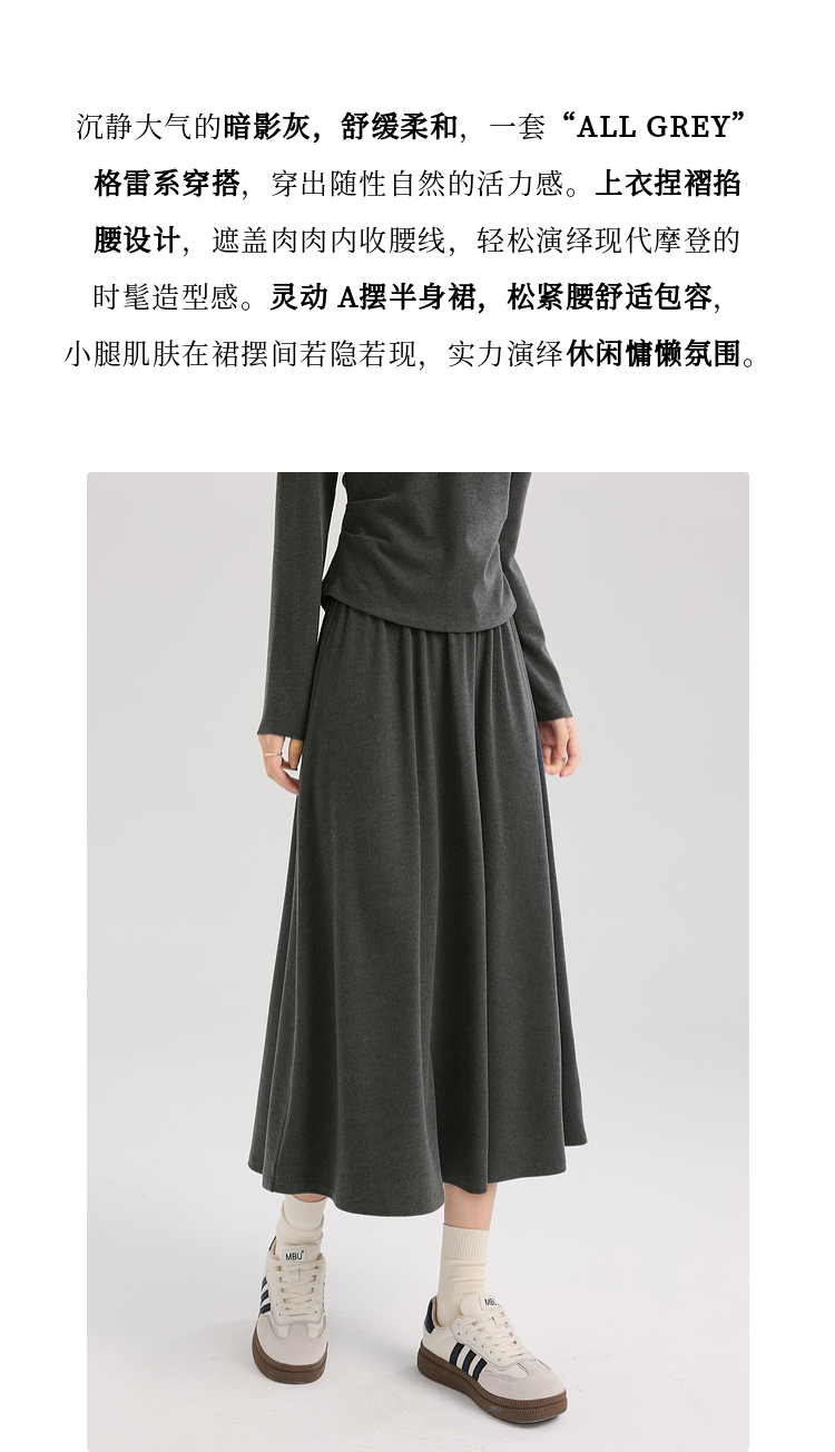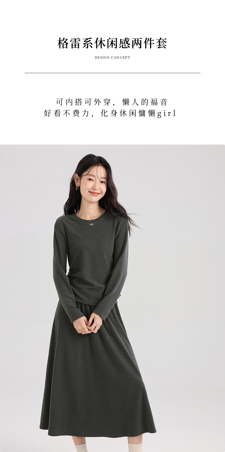 【专属特价】熙世界格雷系秋装搭配一整套休闲高级感灰色上衣半身裙两件套装