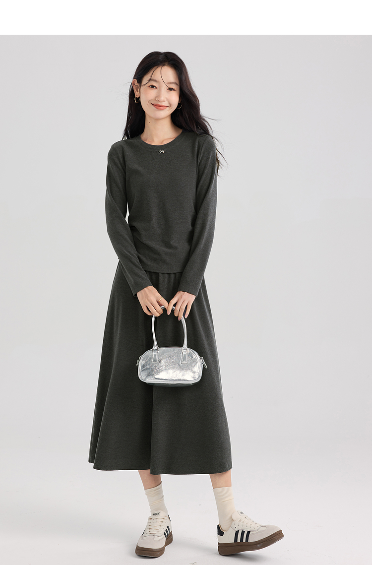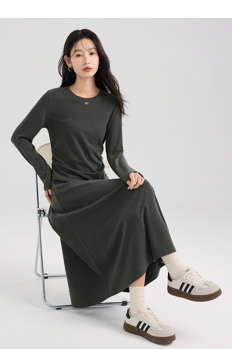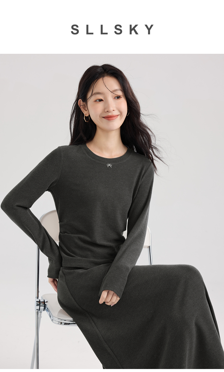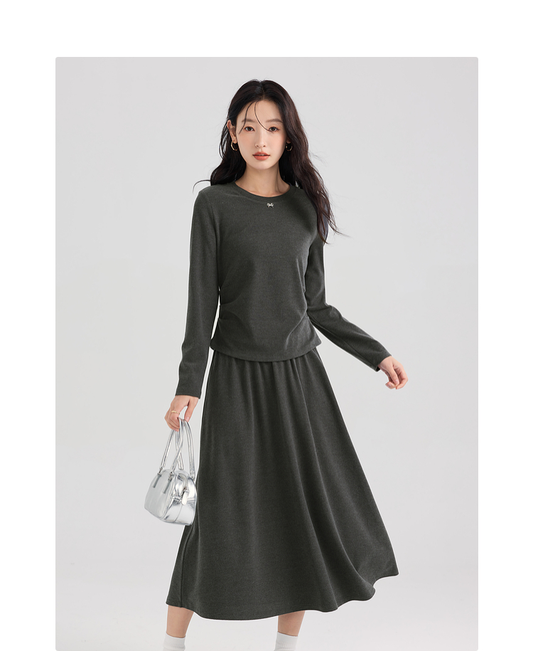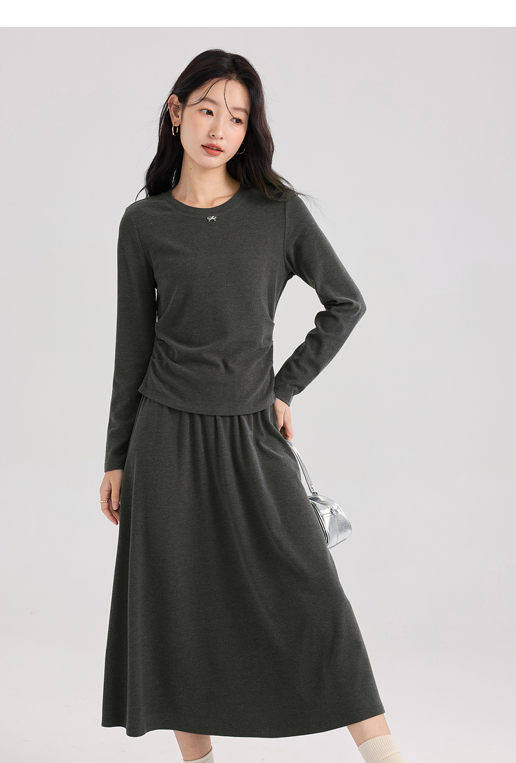 【专属特价】熙世界格雷系秋装搭配一整套休闲高级感灰色上衣半身裙两件套装